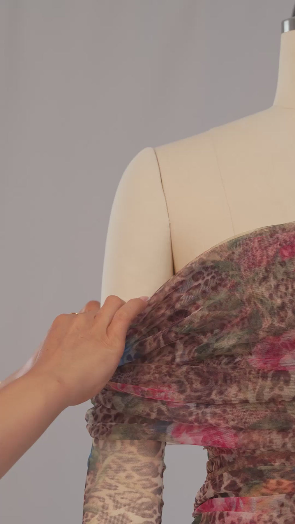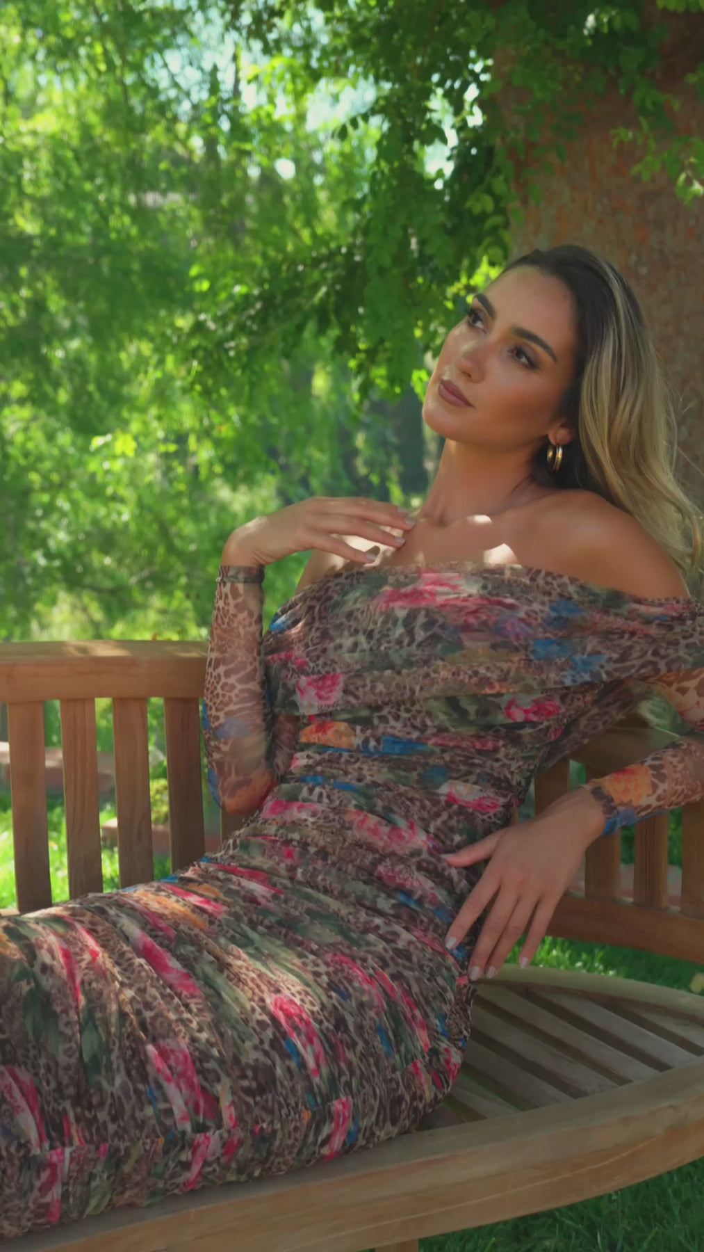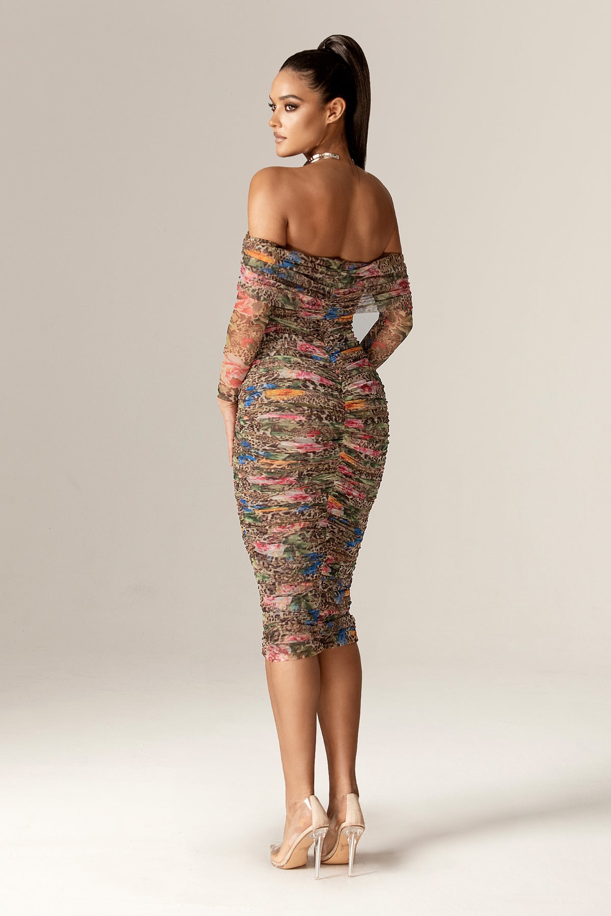 Hayley Off-Shoulder Mesh Midi Dress (Leopard’s Peony)