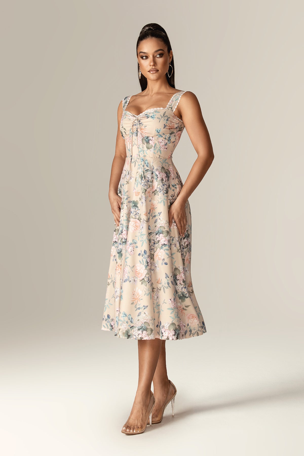 Kisha Floral Midi Sundress (Peony Peach)