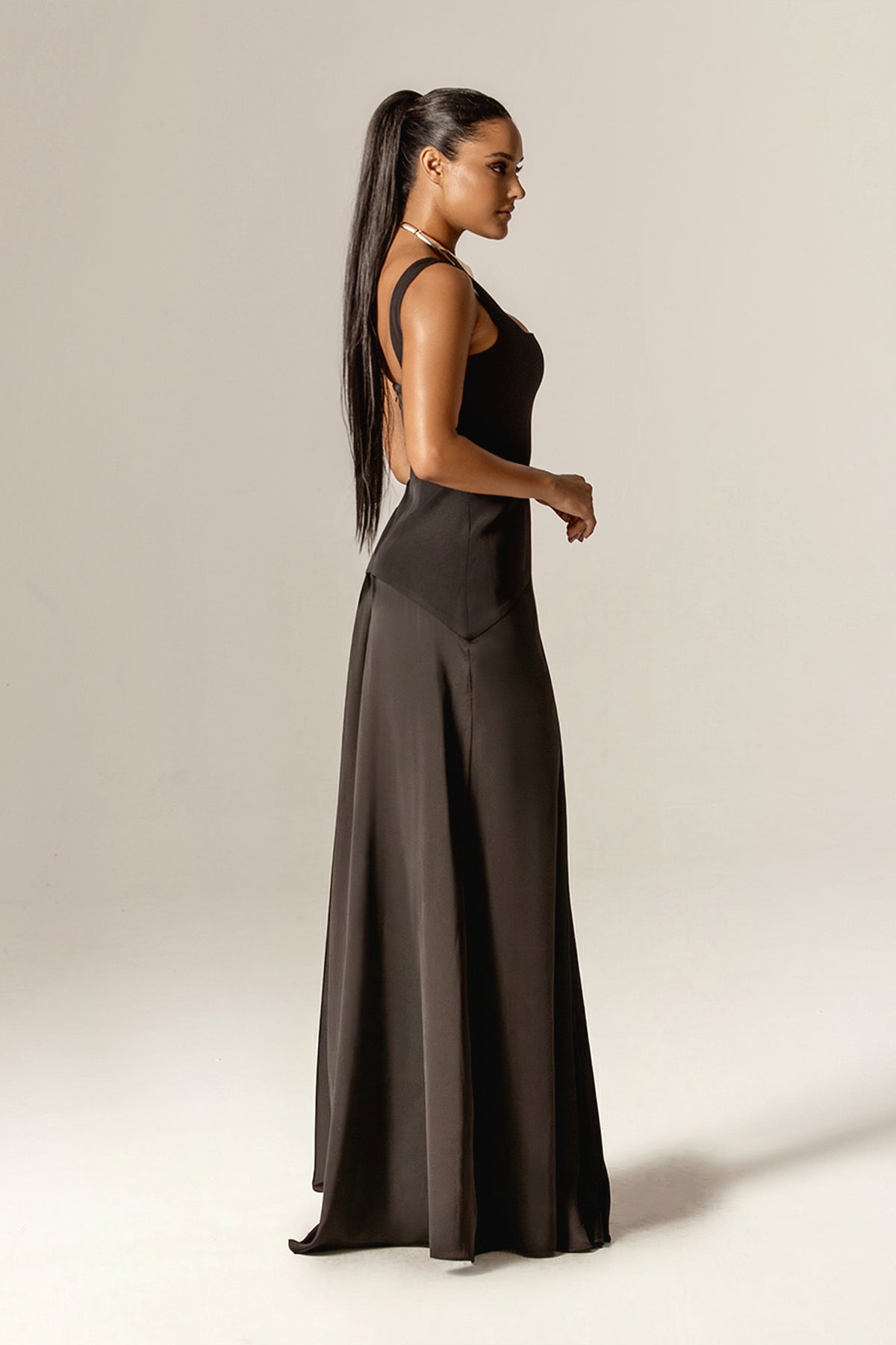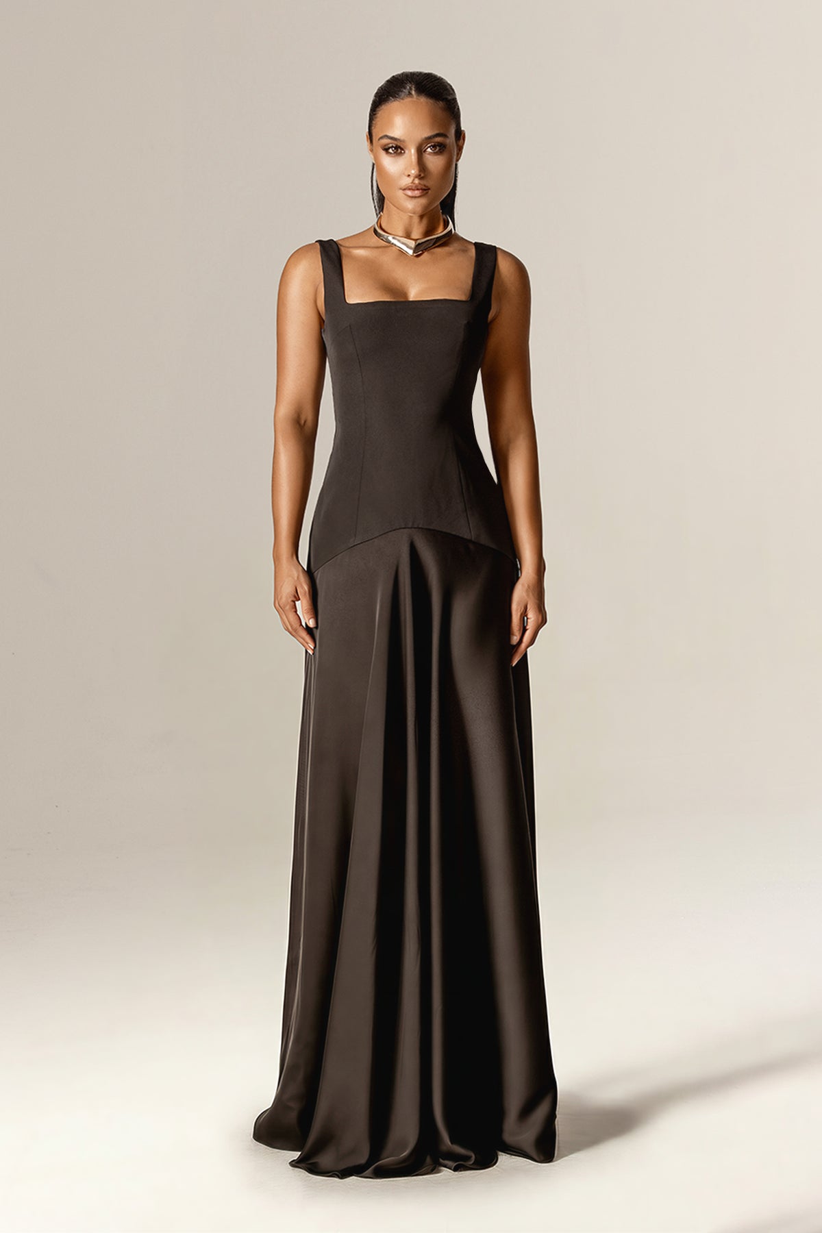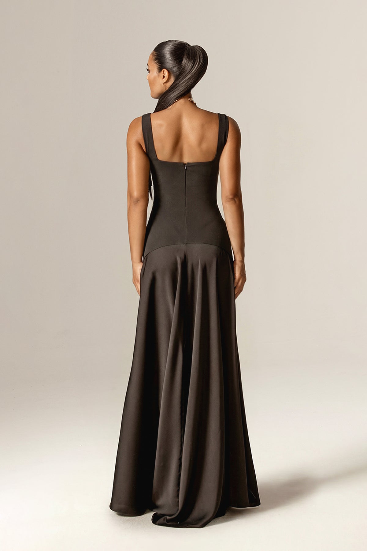 Make your body the main character with Beverly. It's the epitome of timeless elegance. Designed with a clean square neckline and a beautifully contoured bodice, this gown is tailored to flatter the figure with a sleek, elongated silhouette.