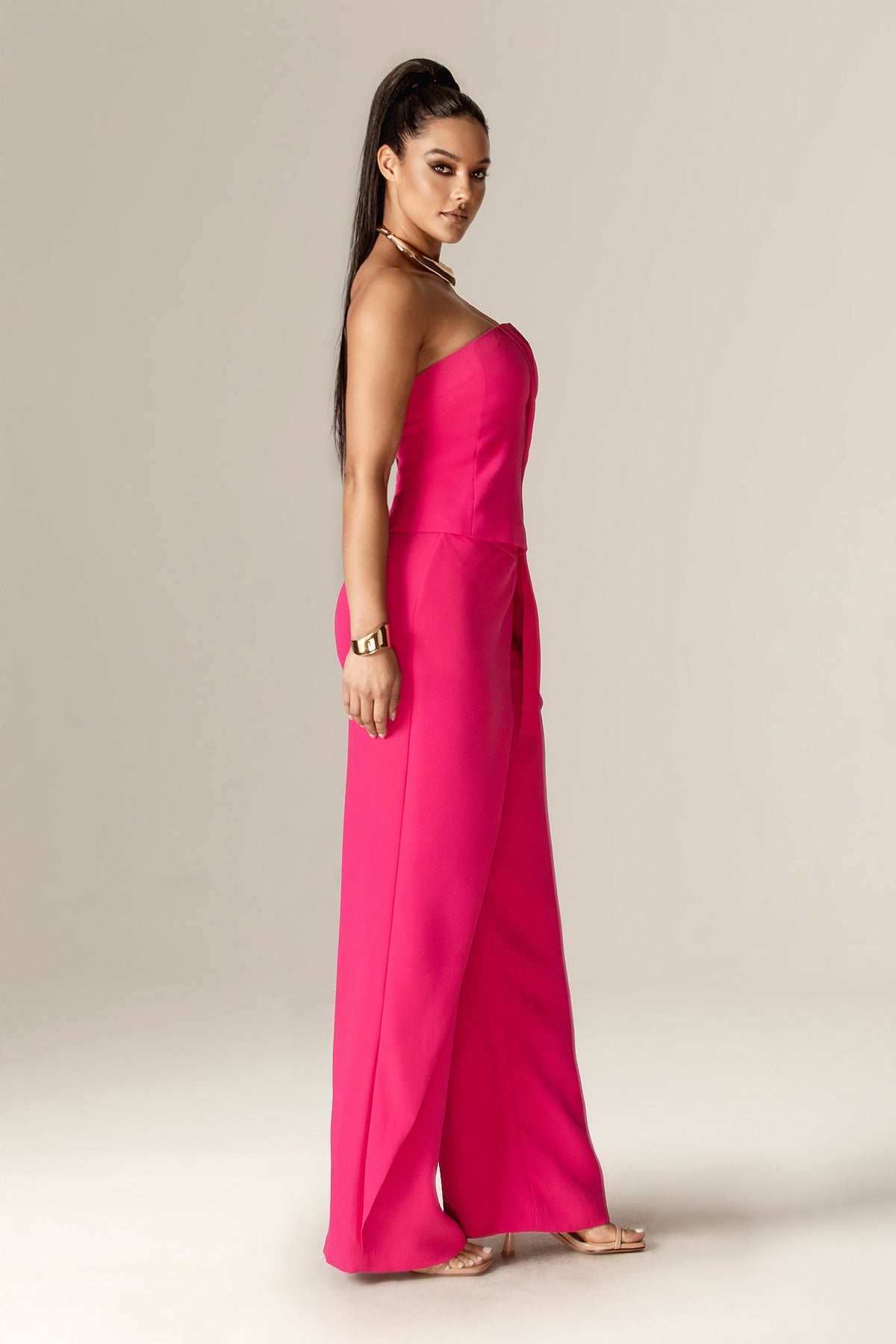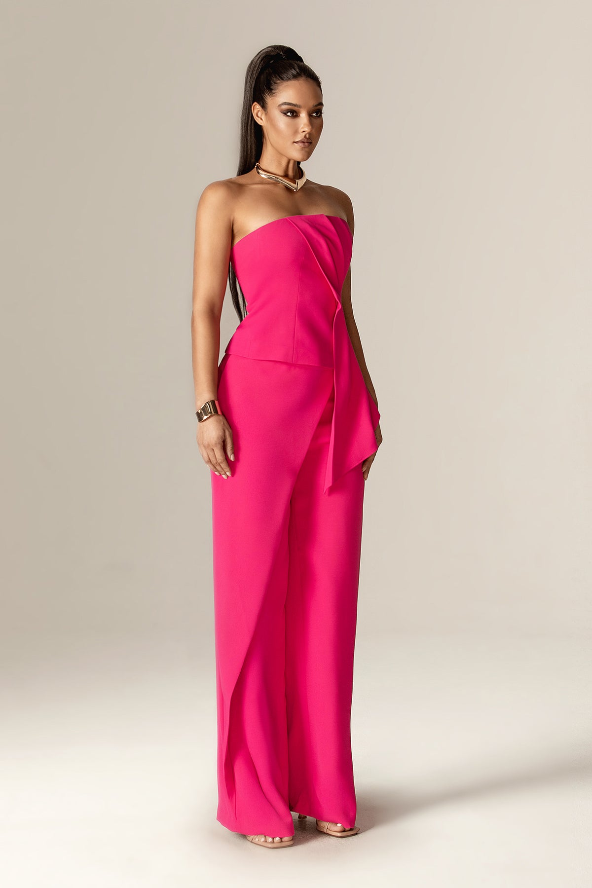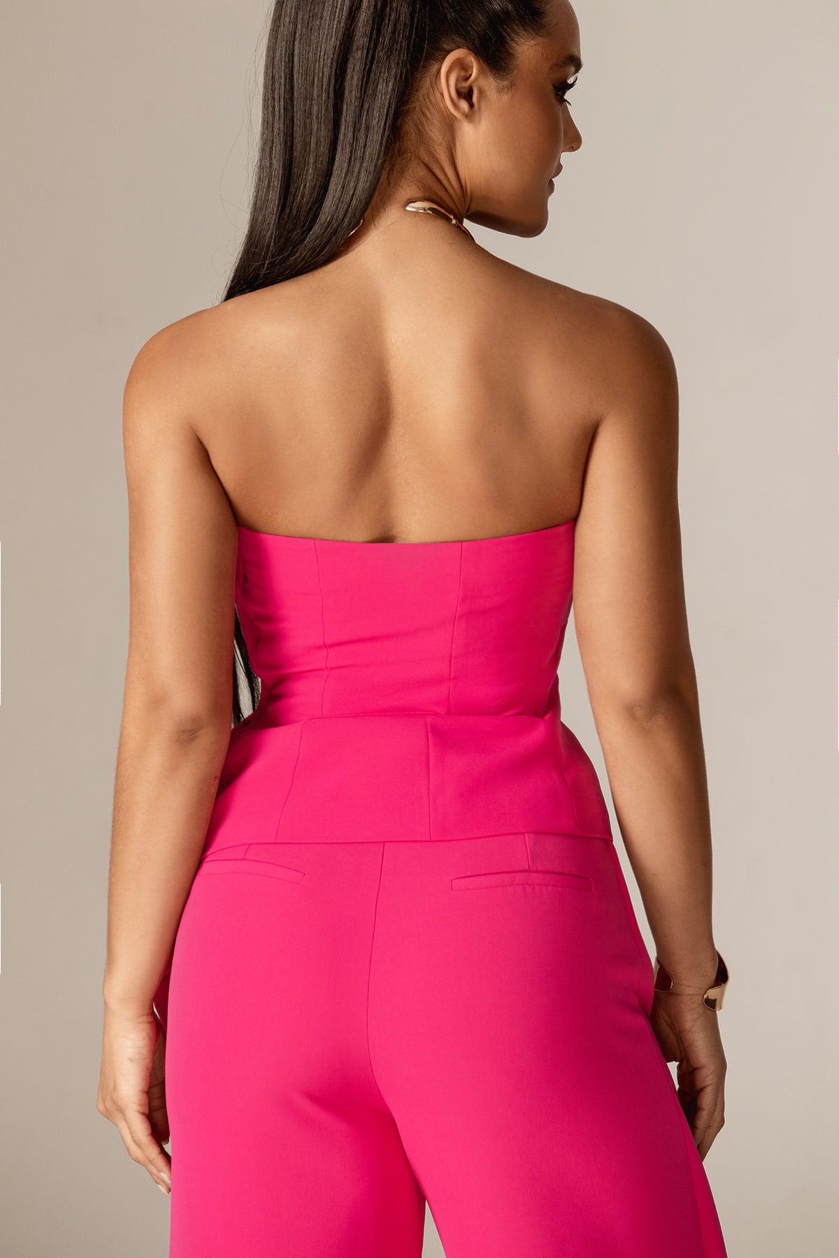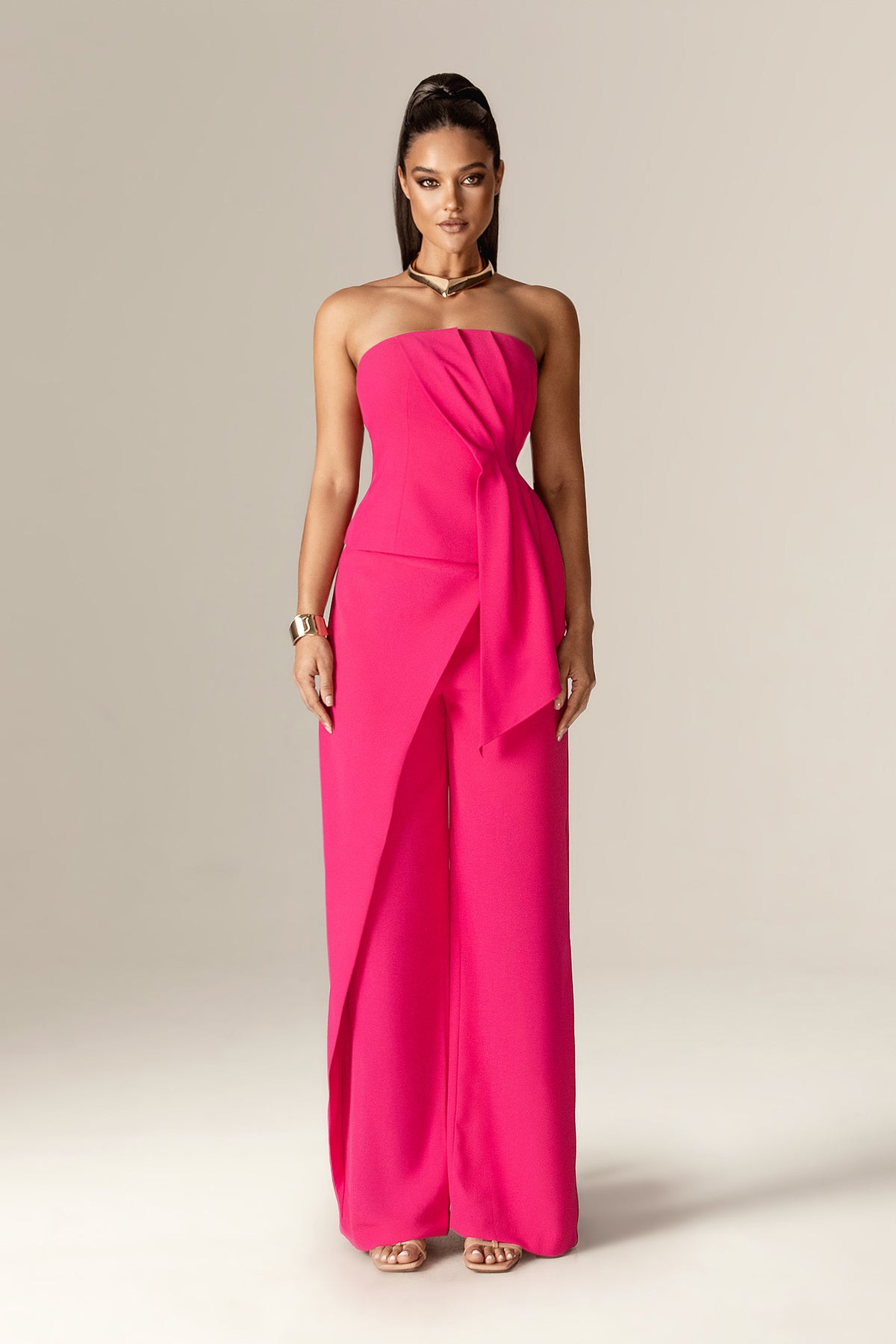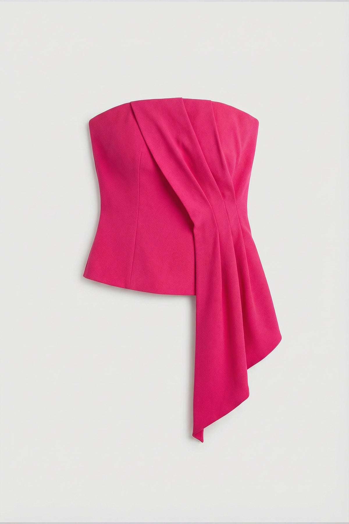 Bold, sleek, and unapologetically chic, Atiya is the statement strapless top your wardrobe’s been waiting for. Designed in vibrant fuchsia, it features sculptural draping that artfully wraps the body, creating a clean, modern silhouette that feels both structured and feminine.
