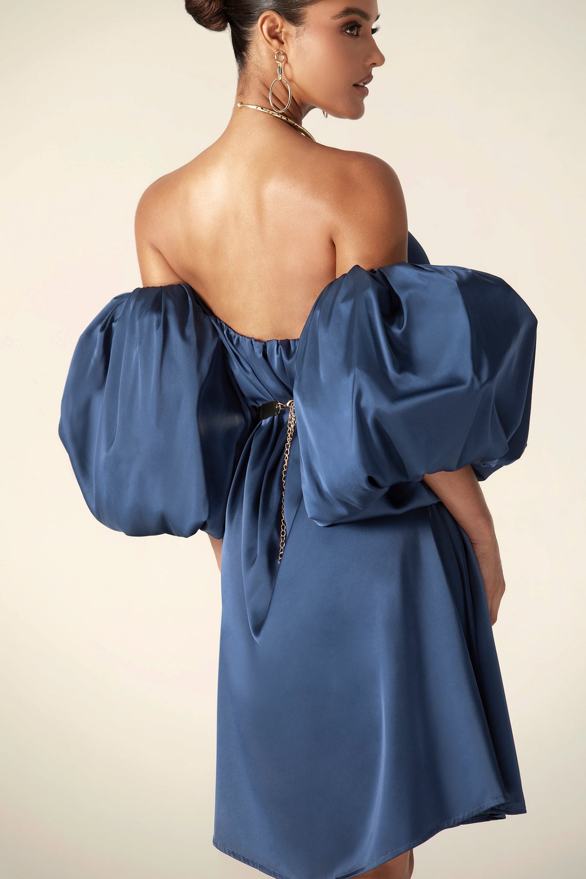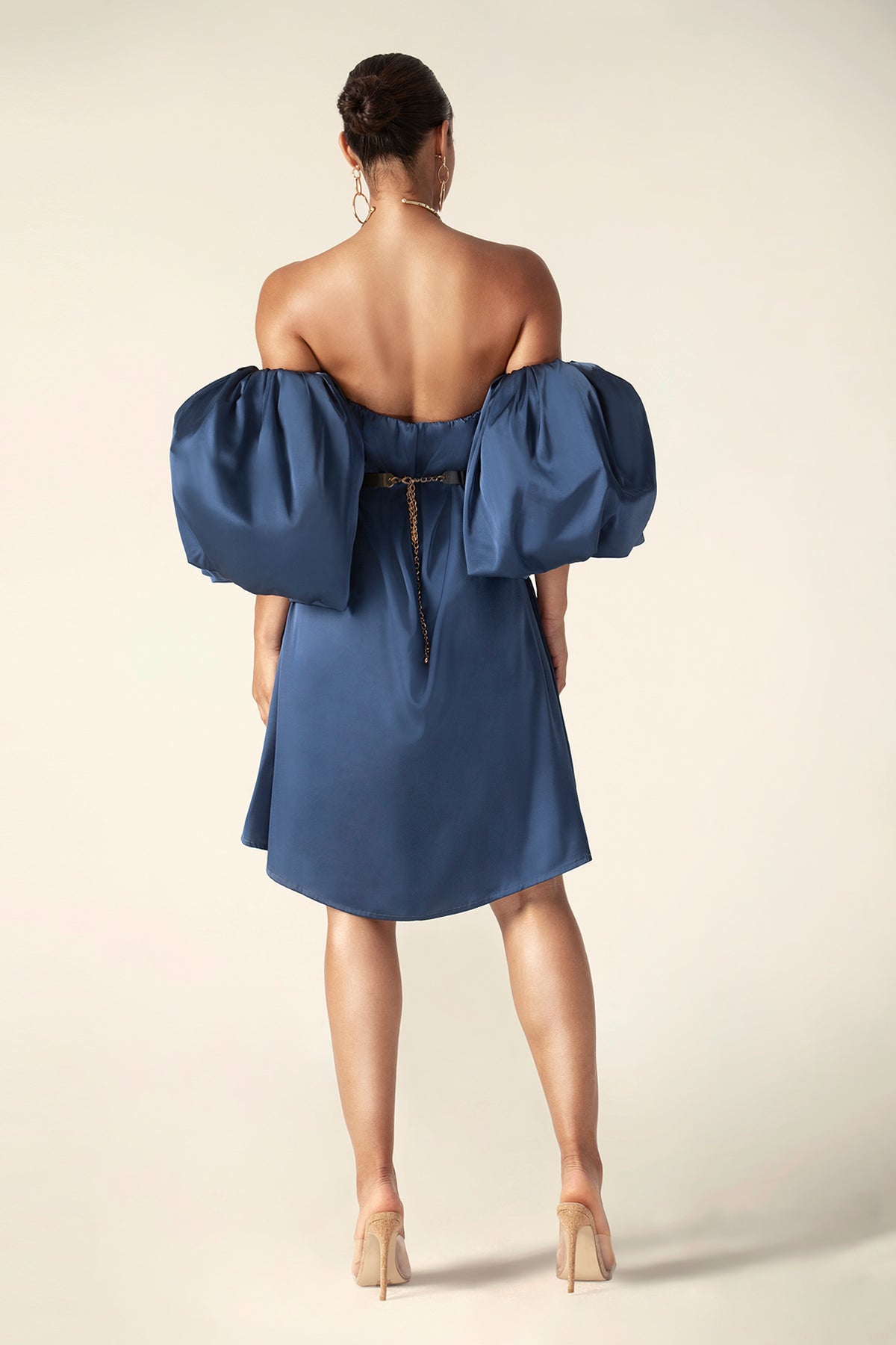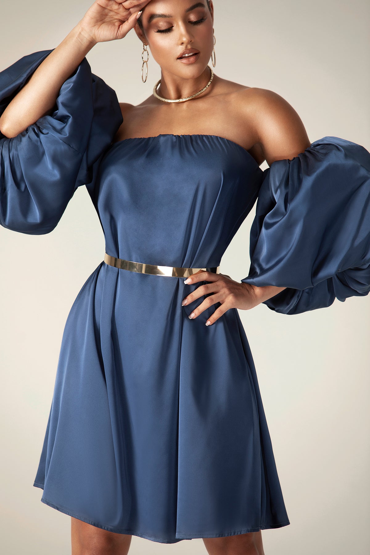 Our 'Ella' Satin dress is so fun and flirtatious, making it perfect for romantic days. Made from our lustrous soft satin in a pretty rose hue. It has a balconette neckline to the bodice with a free waist that makes you feel comfortable and elegant at the same time. Dramatic sleeves have to be exaggerated and look more attractive. This dress is fully lined as you'd expect from us. Wear yours with our 'Farah Chain Belt'.