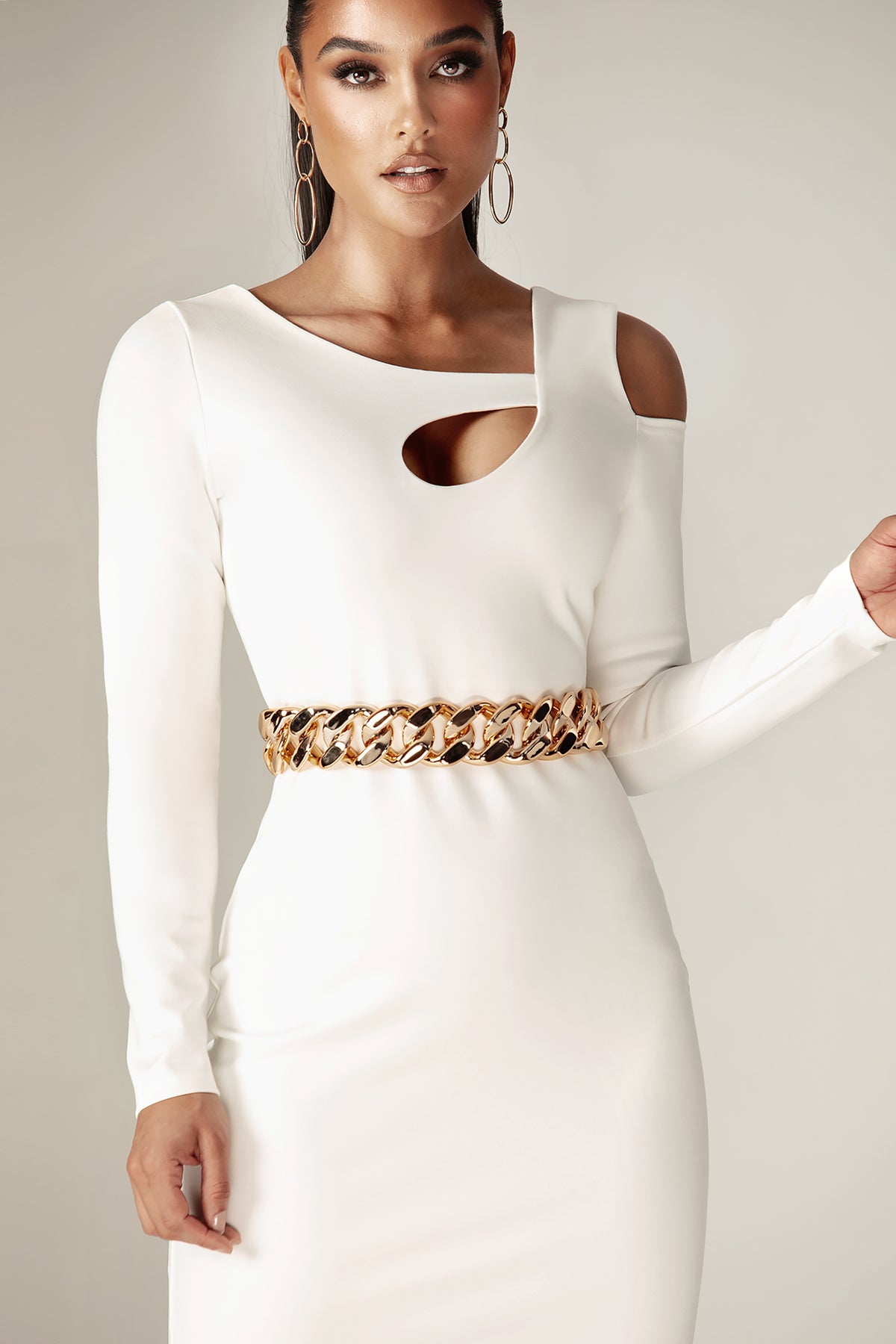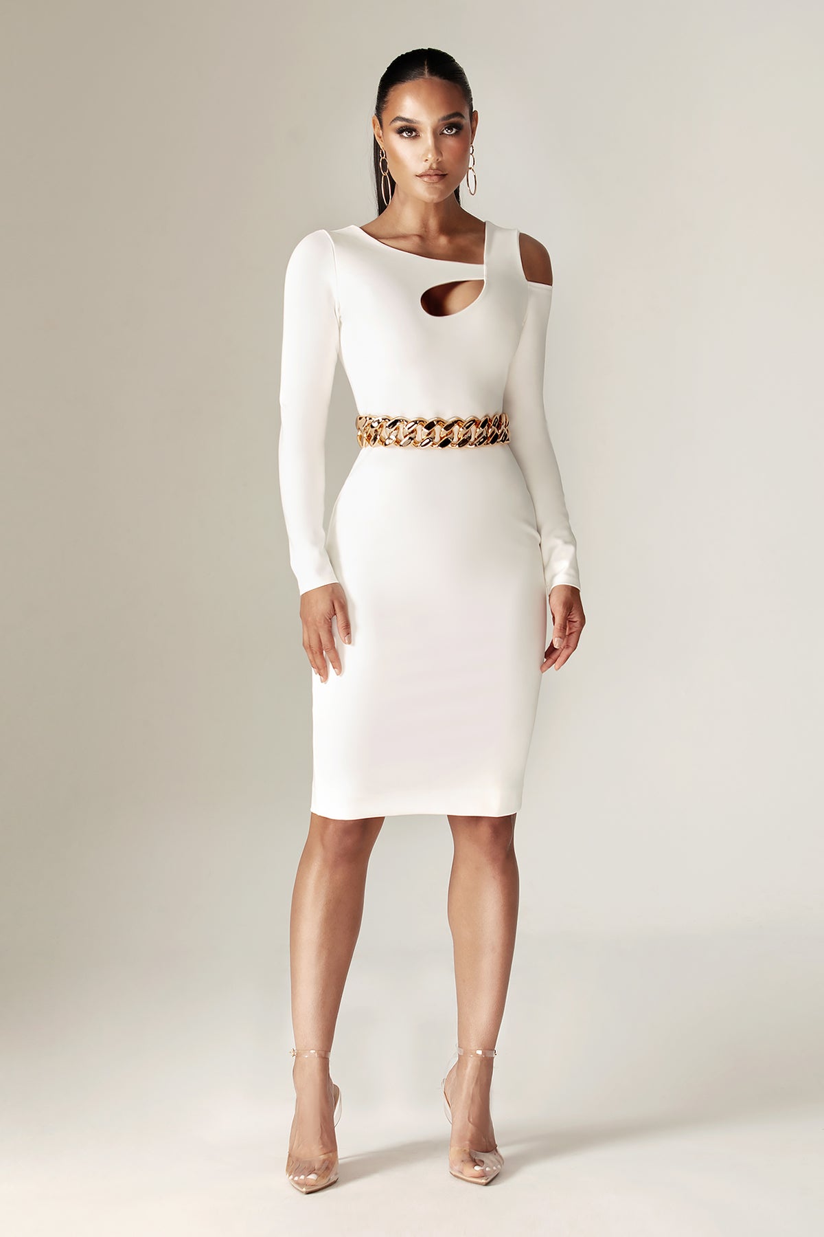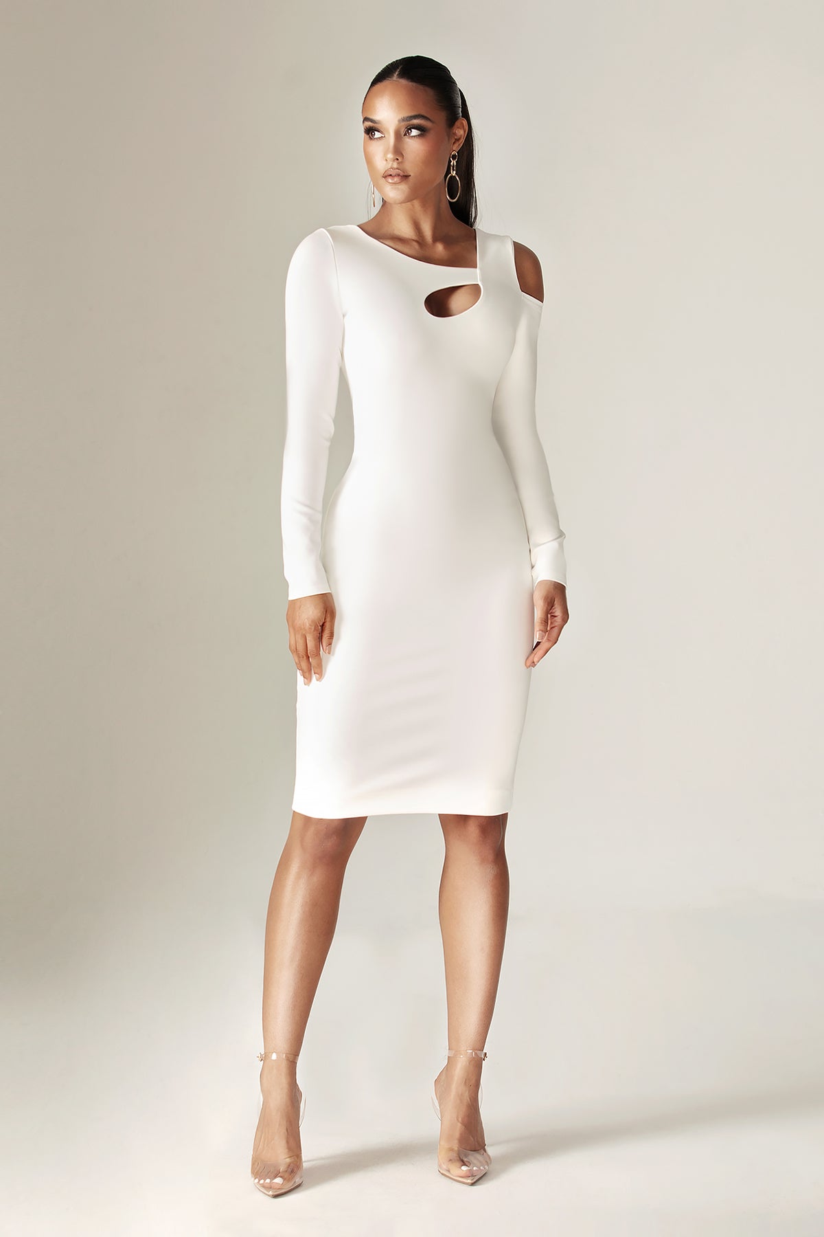 Sinthia Cutout Ponte De Roma Midi Dress (Off White)