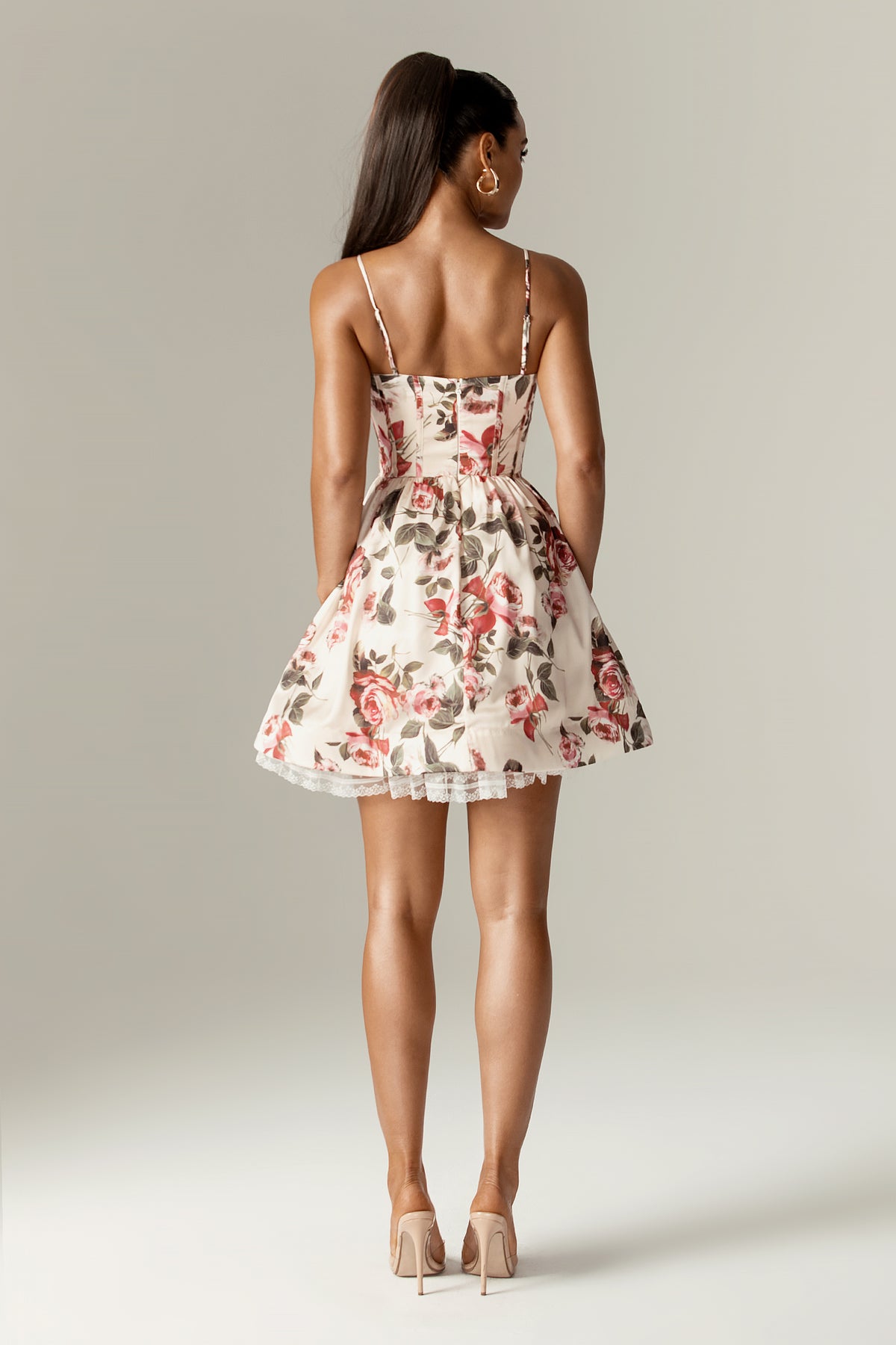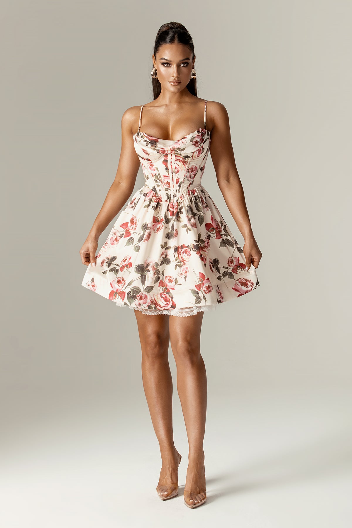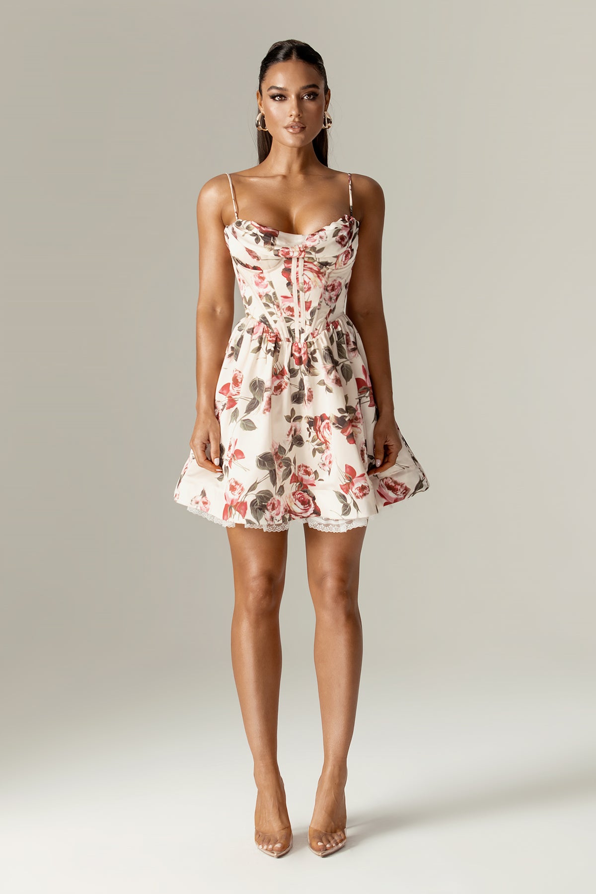 Altha Italian Rose Print Corset Mini Dress (Rose Print)