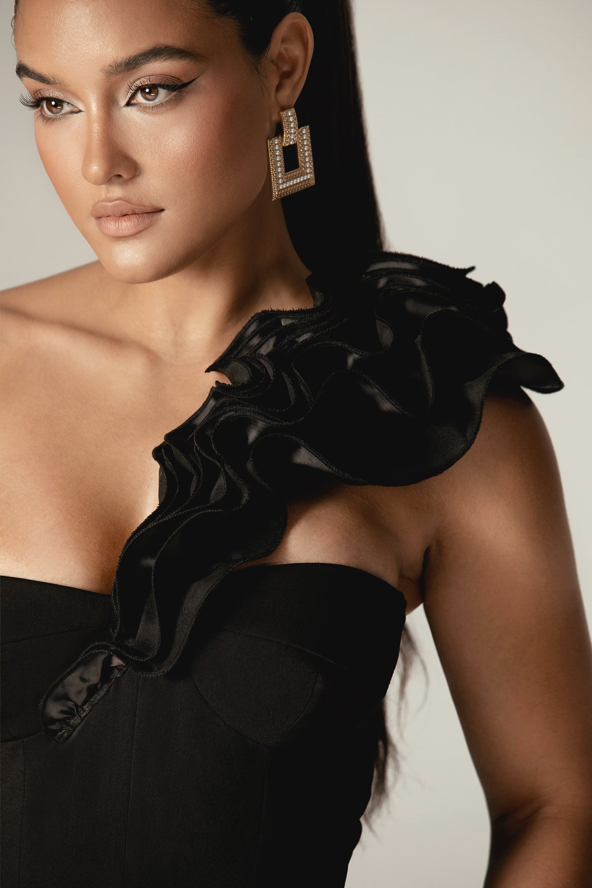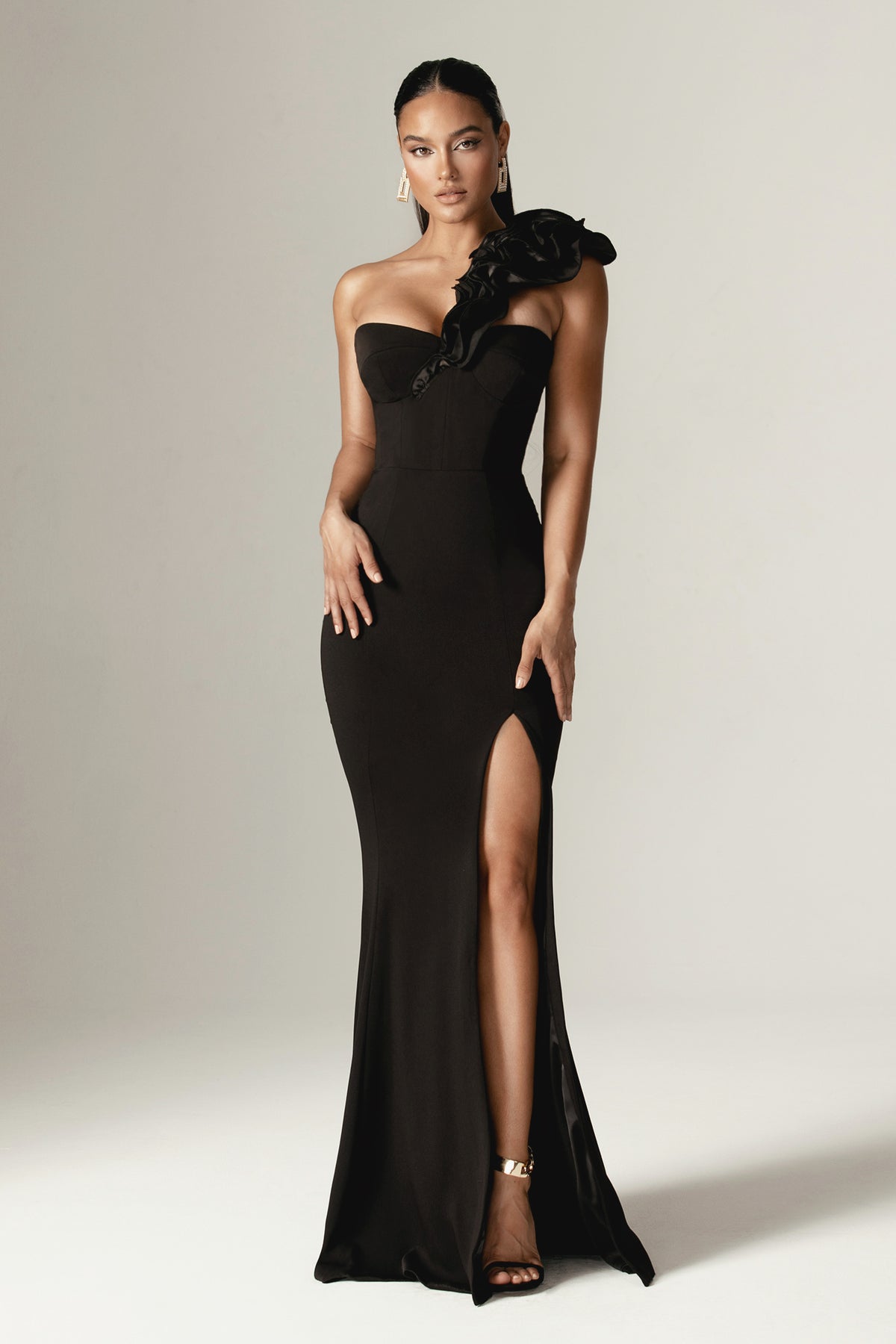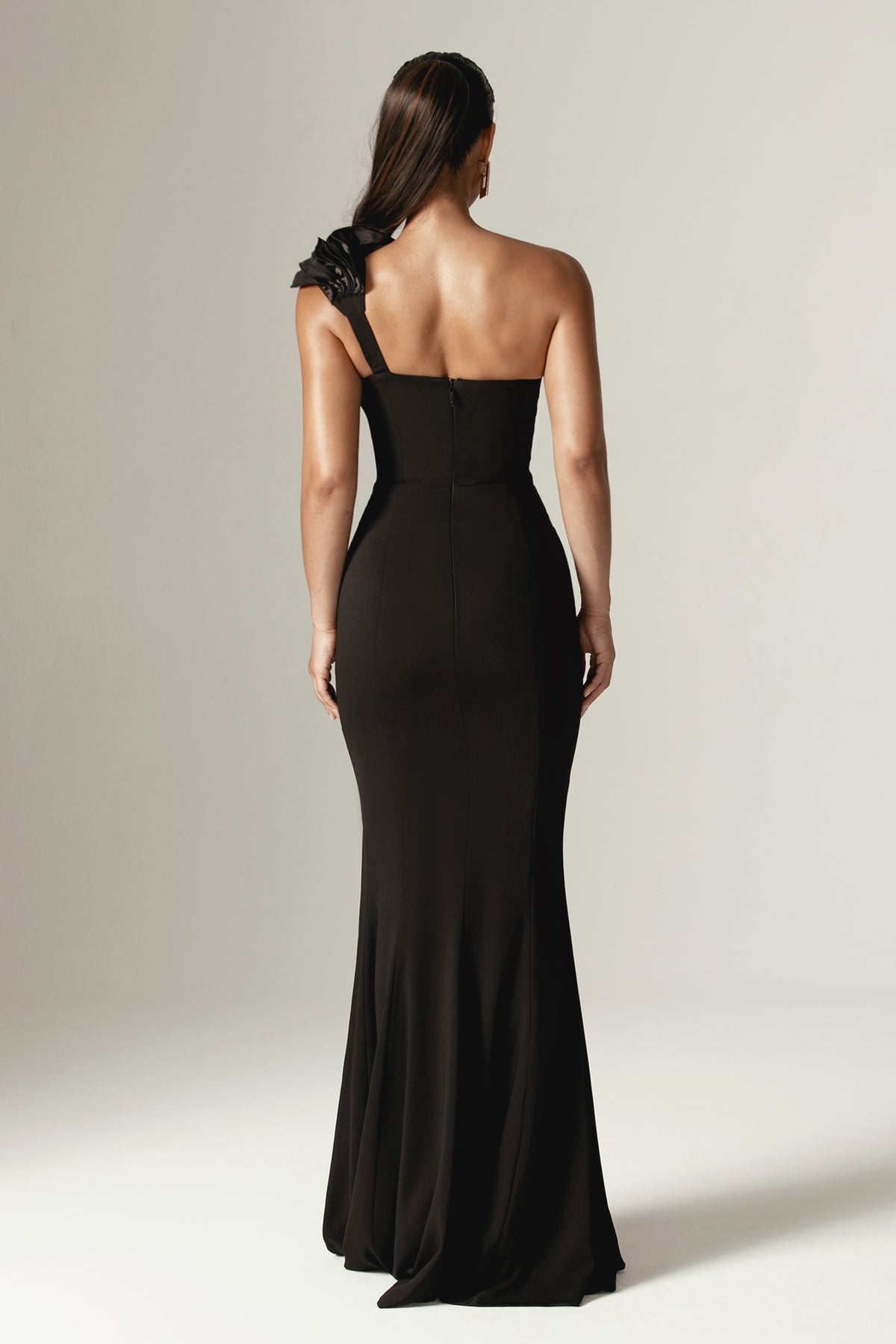 Avery 3D Flowers Corset Maxi Gown (Black)