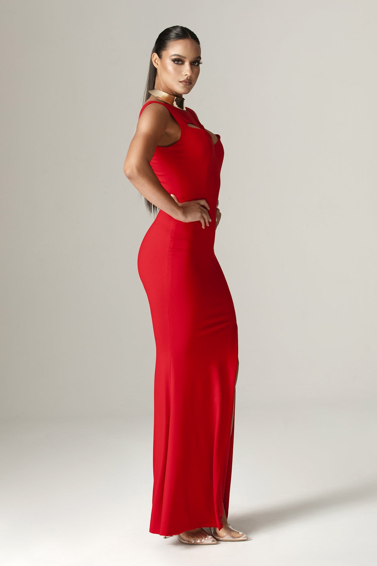 Belice Sweetheart Cut Out Maxi Dress (Red)