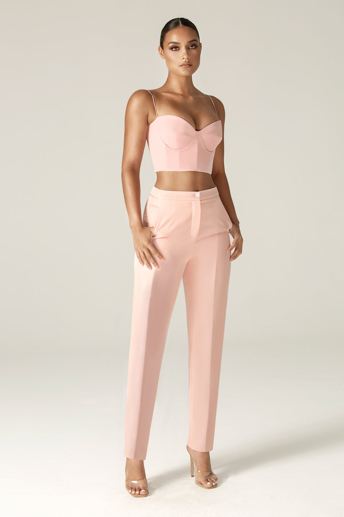 Cleo Tailored Straight Pants (Soft Pink)