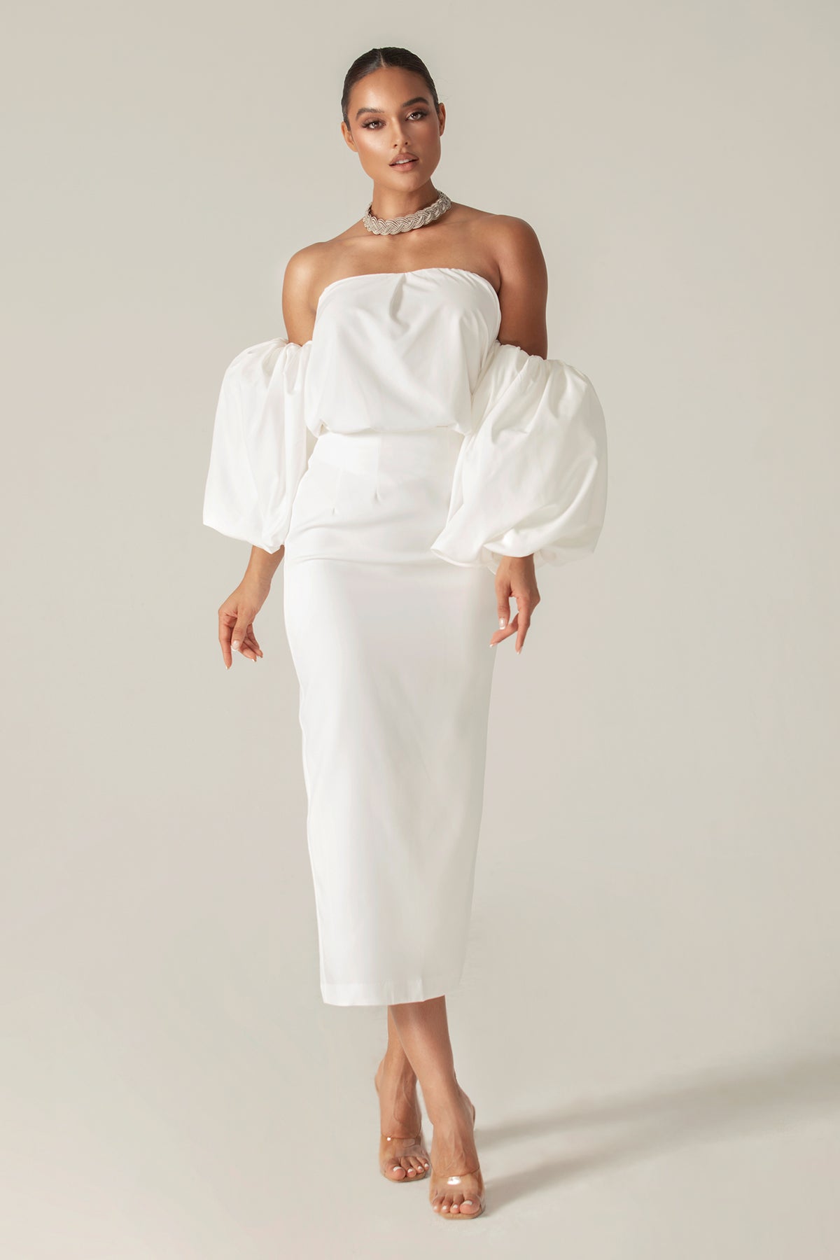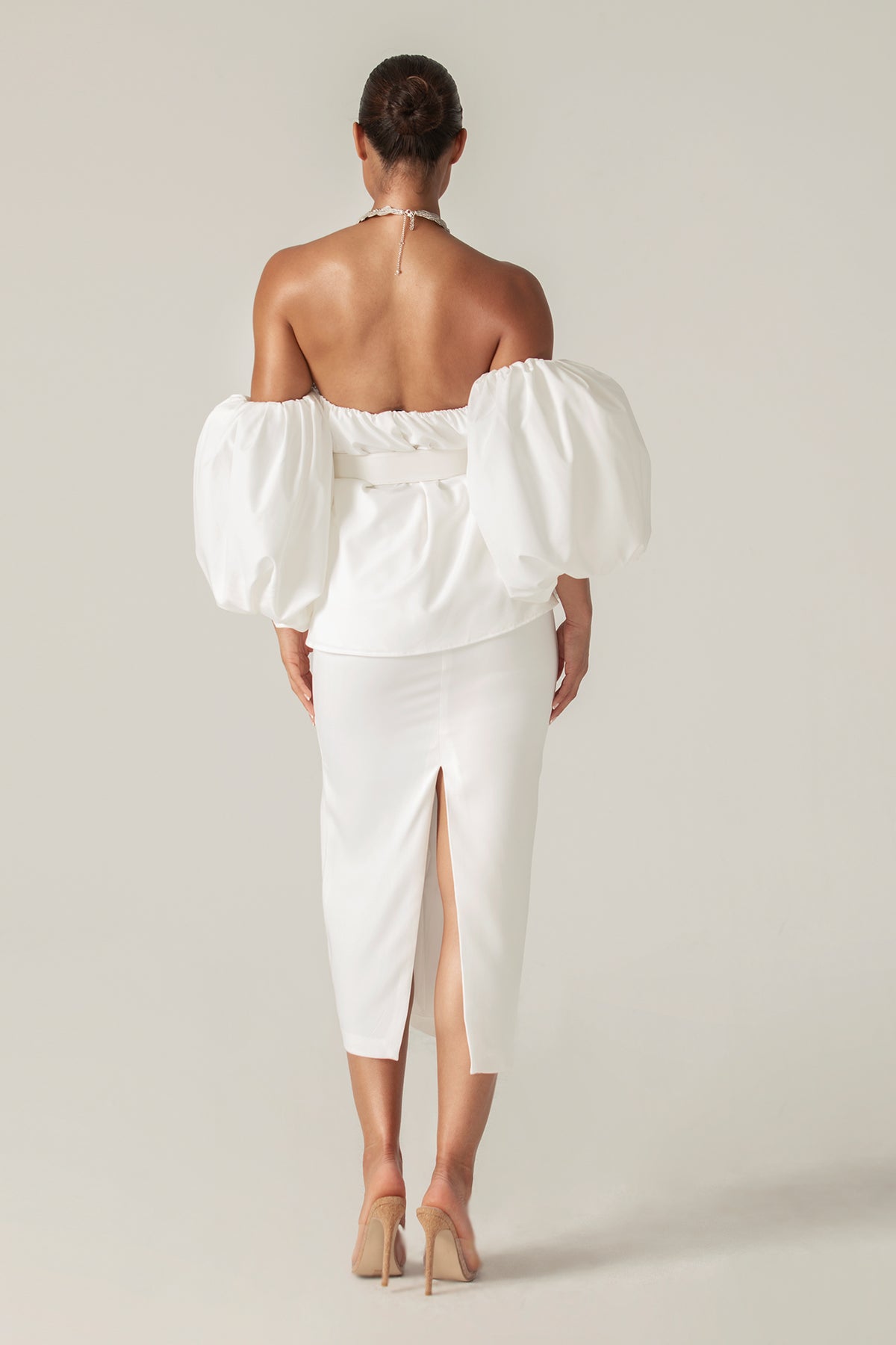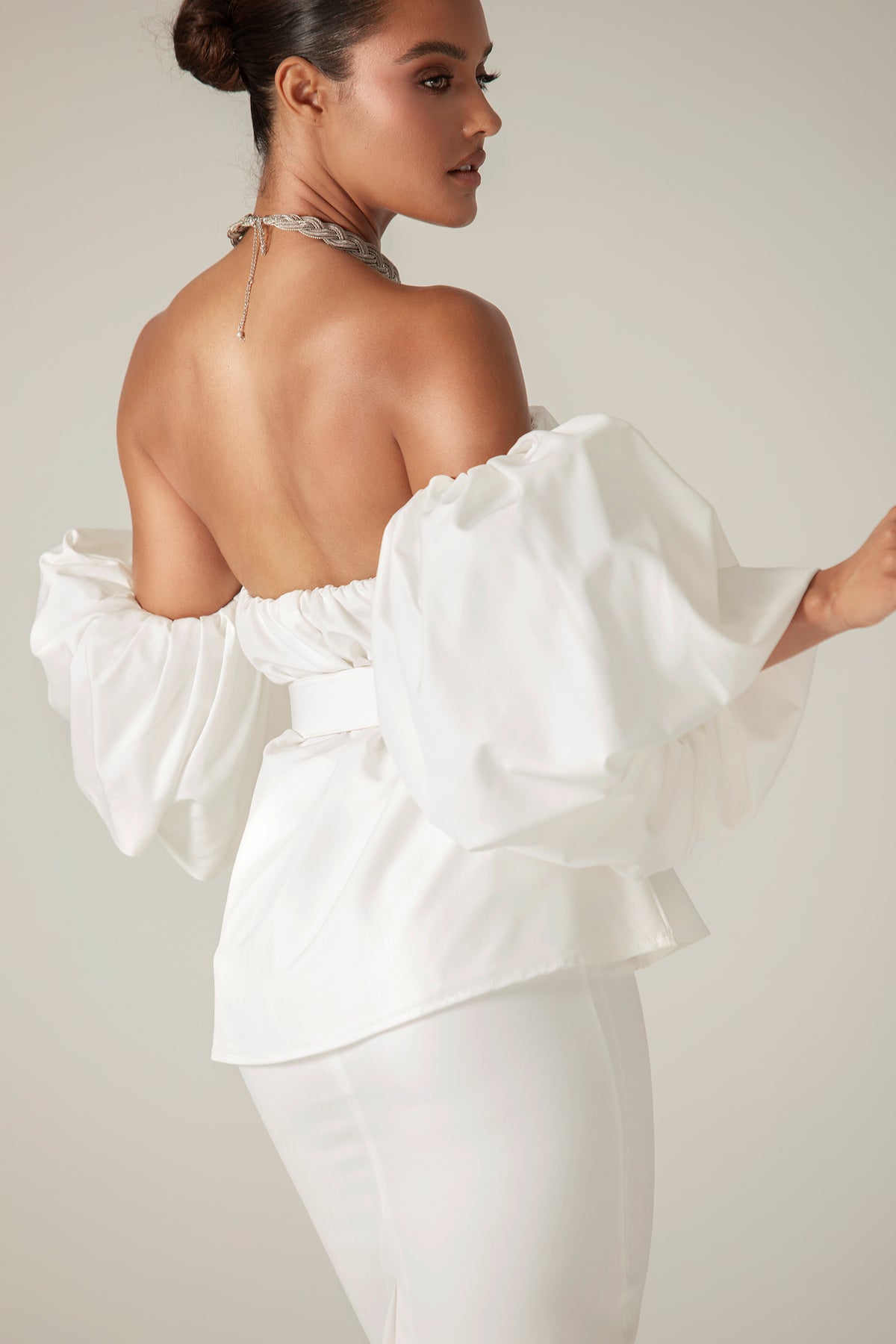 Damaris Off Shoulder Puff Sleeve Top (Off White)