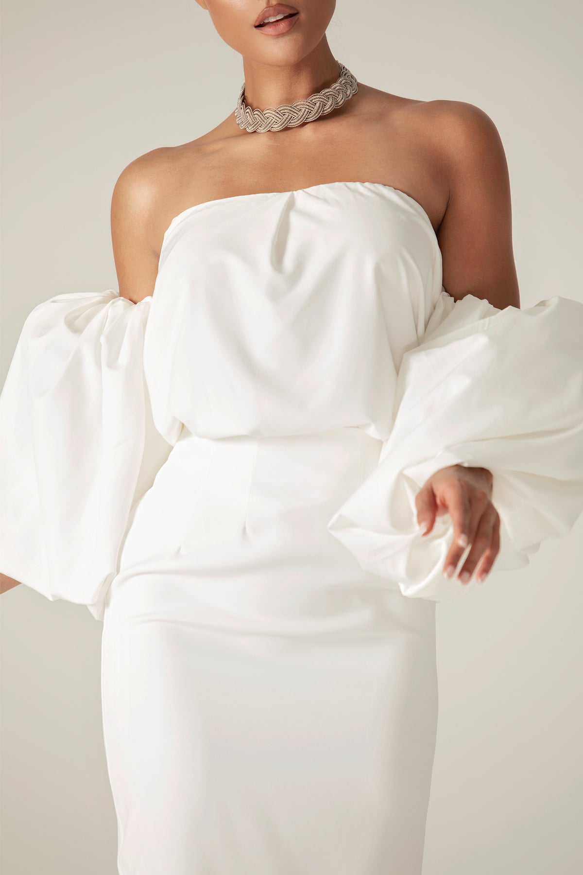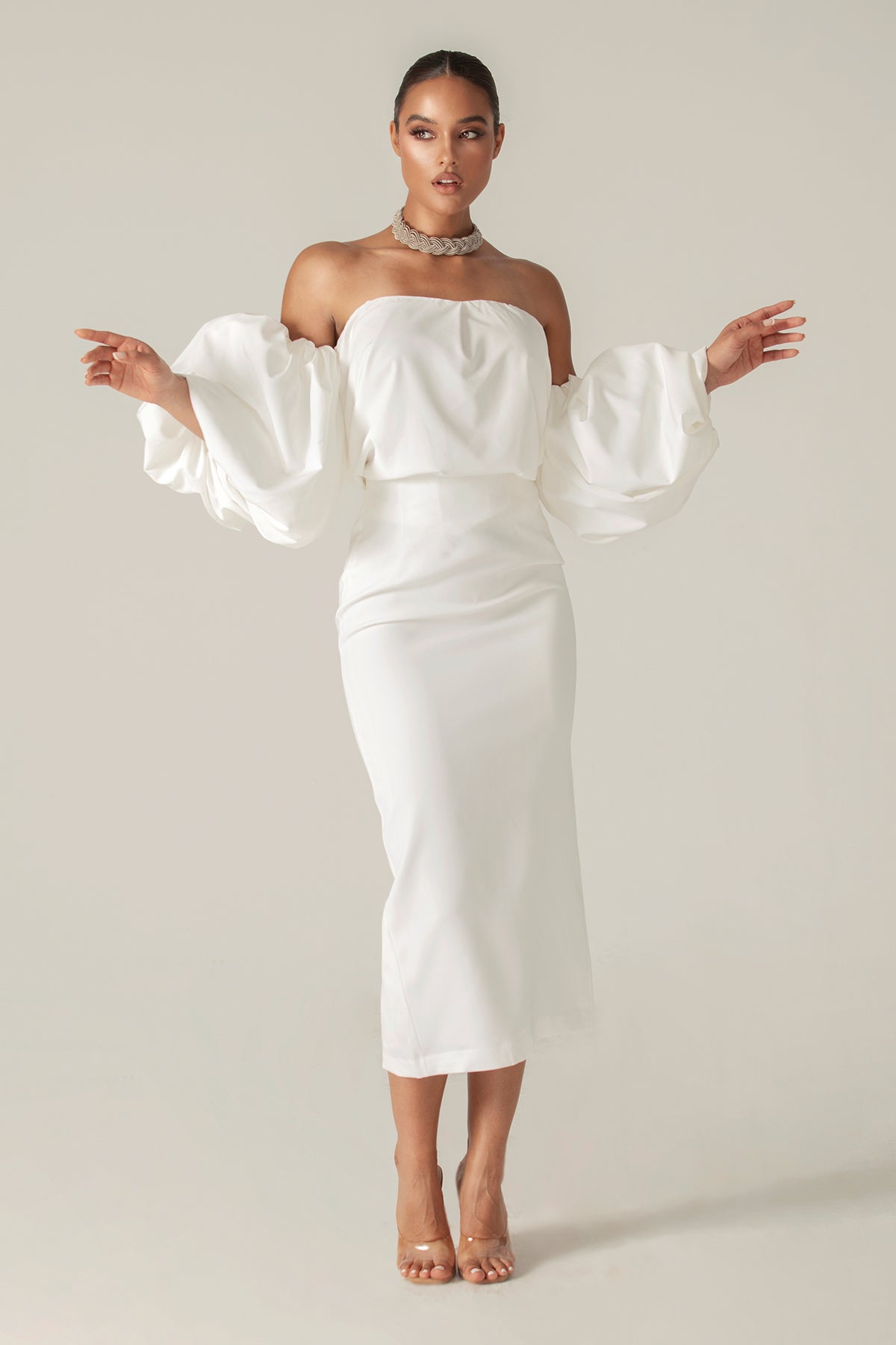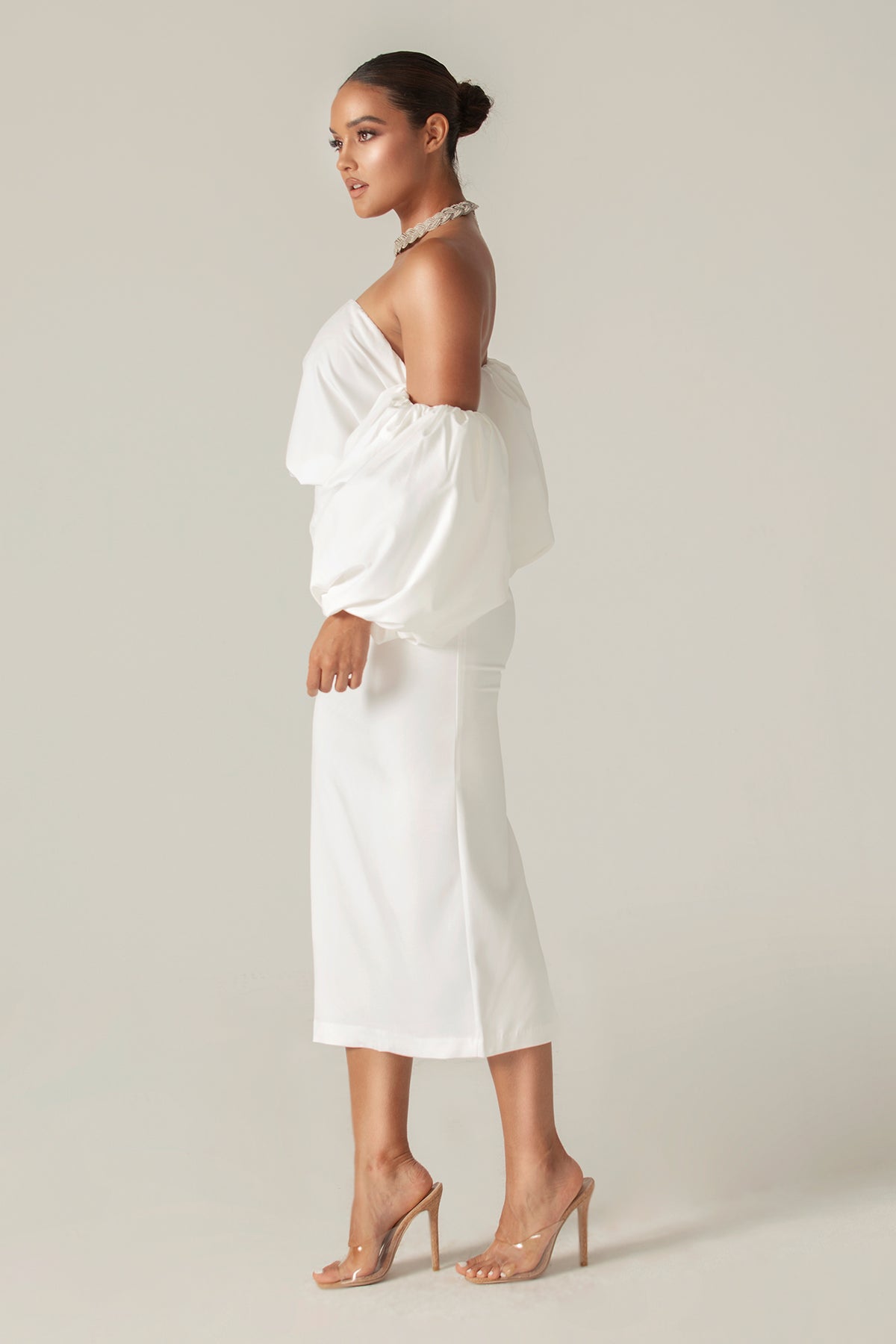 Damaris Off Shoulder Puff Sleeve Top (Off White)