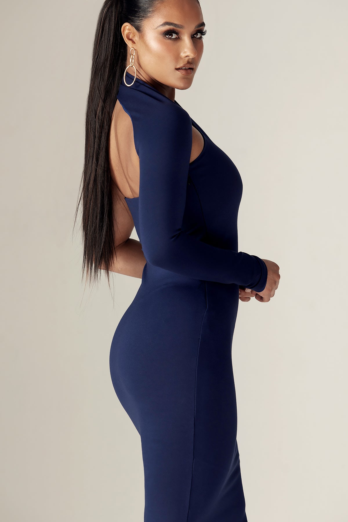 Make a statement with this unique fitted dress it’s Classy and timeless elegance in a one shoulder silhouette. Cut from our signature highest quality heavy-weight stretch (Ponte De Roma) fabric that smooths and sculpts every curve. Designed in a one shoulder cut that falls below the knee and the internal layer of the dress is lined in soft and very smooth texture lining. you can go braless if you wish or you can fit a strapless bra under if you'd prefer. Dasha is the perfect new generation little dress. The longer midi cut is classy and elegant and it can be worn anywhere,  dinner dates, cocktail nights, formal events. Team with our new ‘Tonia’ Chain Belt to be more glamorous.