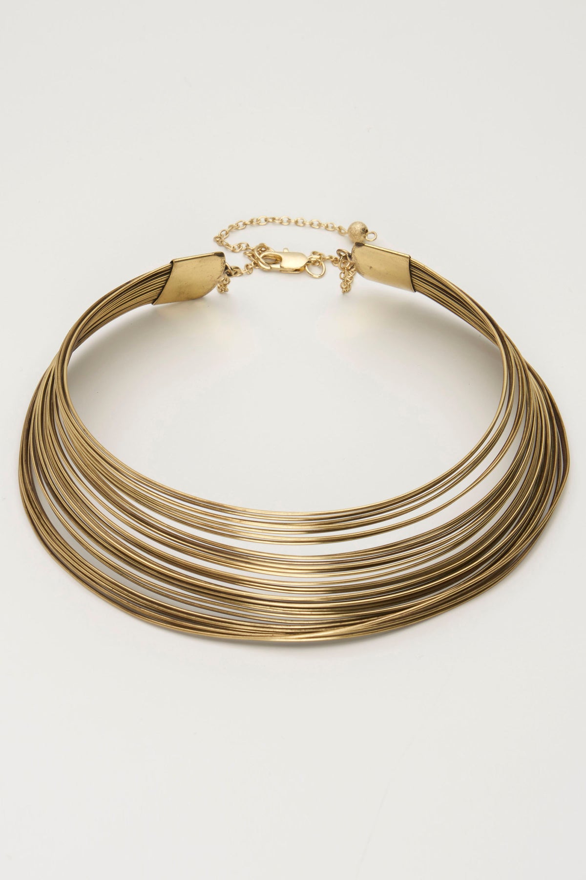 Delara Handmade Multi Strand Brass Necklace (Gold)
