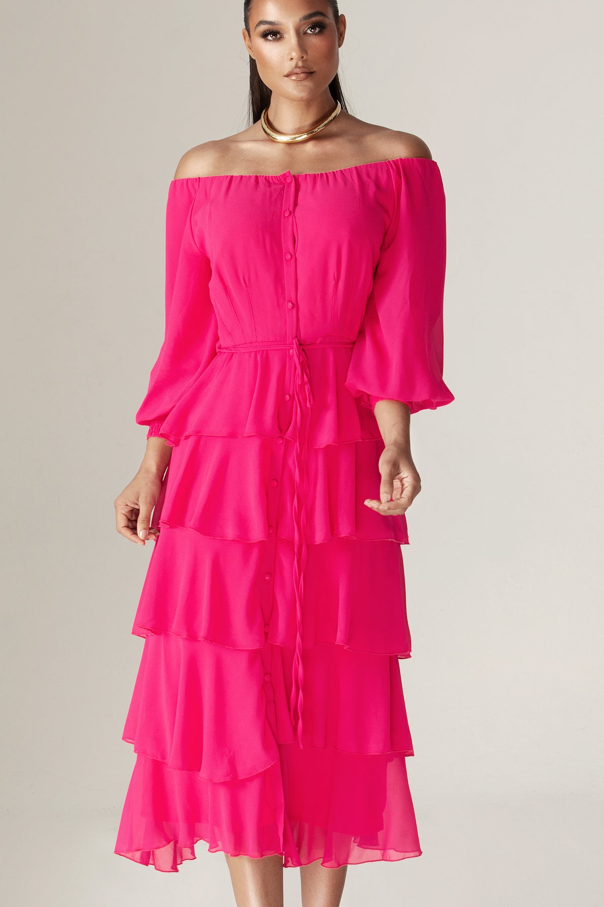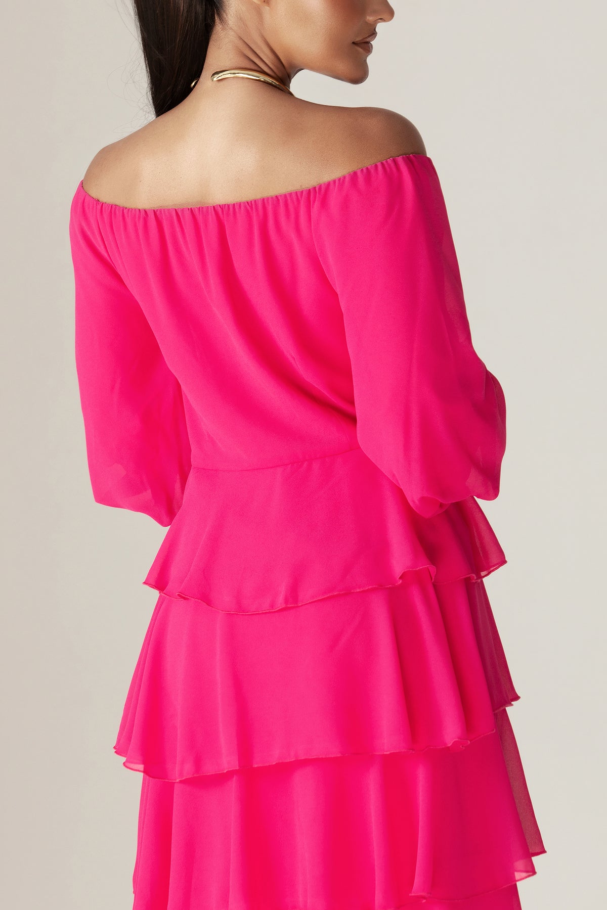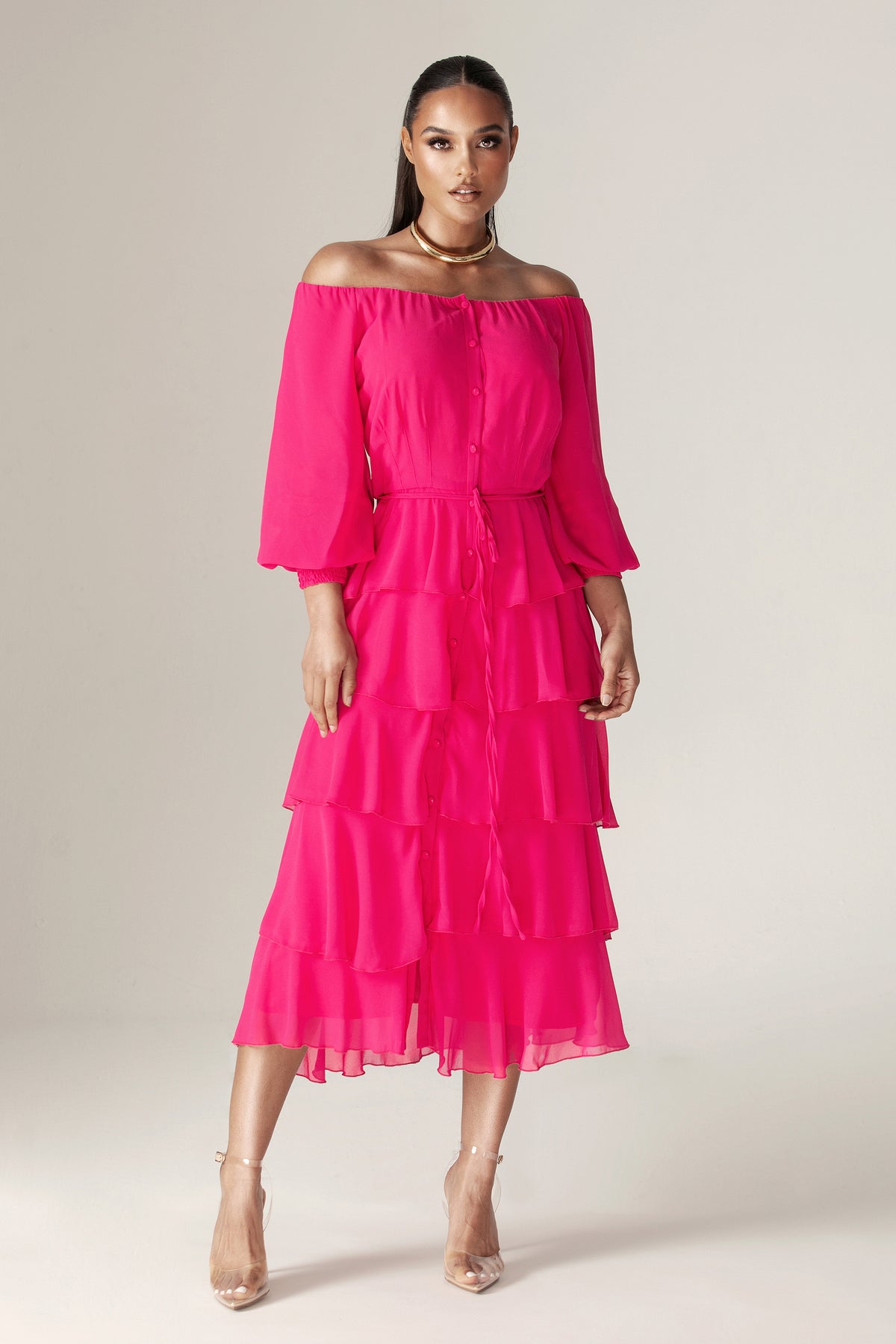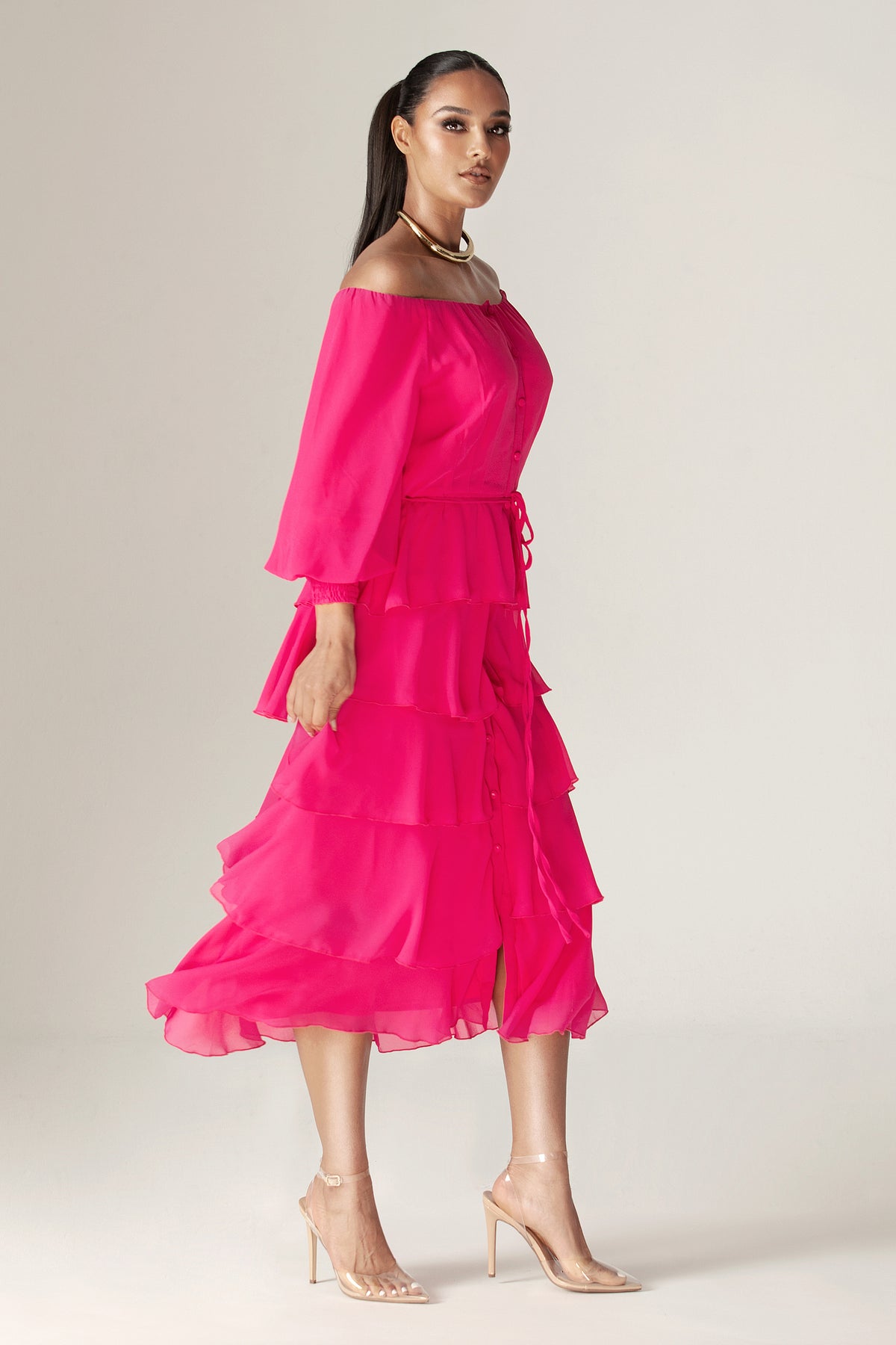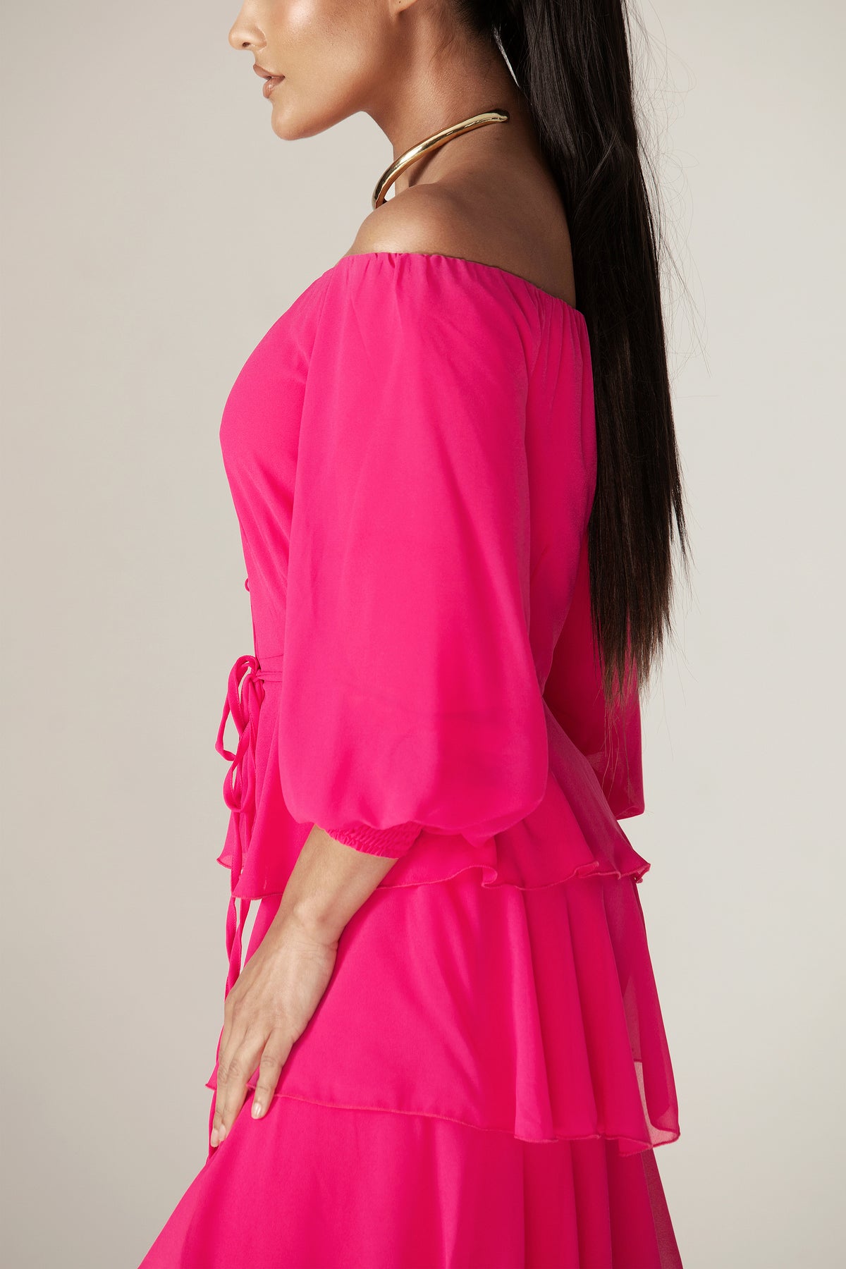 Dorra’s Crisp fresh look has us dreaming of those garden parties and summer trips. It's cut from our soft Chiffon Georgette for a fresh feel decorated with a pretty floral layers. The skirt has special seams that curve over the hips to exaggerate your curves and it's fully lined as you'd expect from us.The pretty puff sleeves add to the fun and floaty vibe of 'Dorra ' and we love the way that the center thigh split shows just a flash of thigh as you walk. 'Dora ' is just perfect for girls who wanna be girls who wanna be sexy.