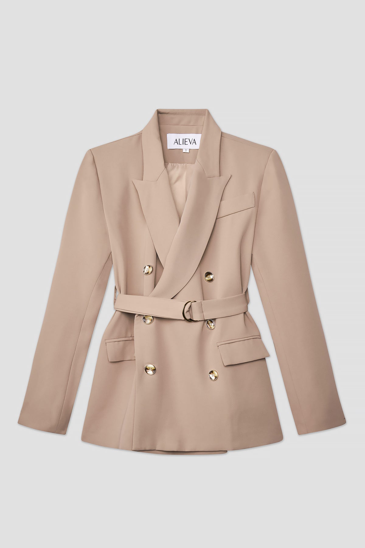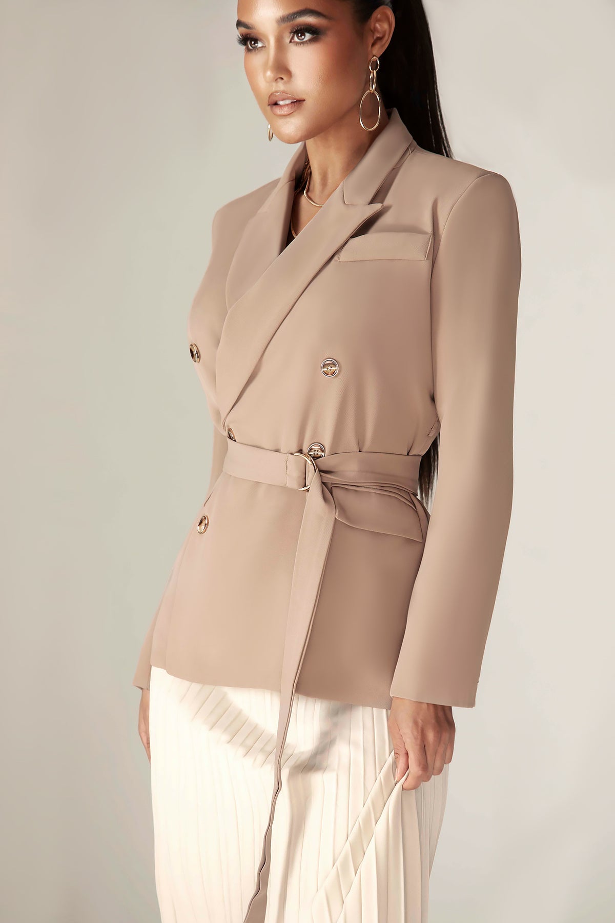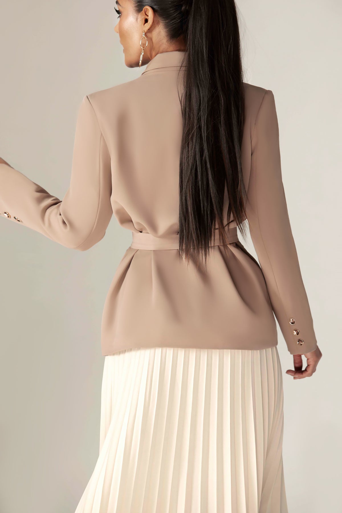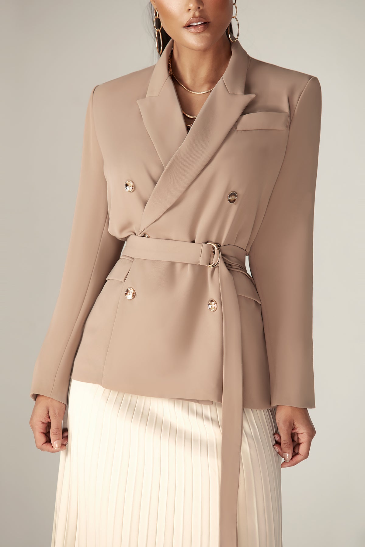 Gloriette Belted Double Breasted Crepe Blazer (Pastel Brown)