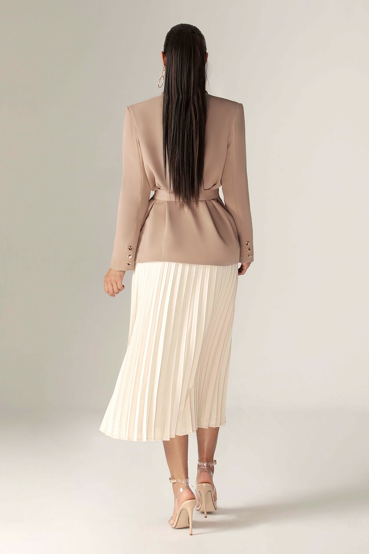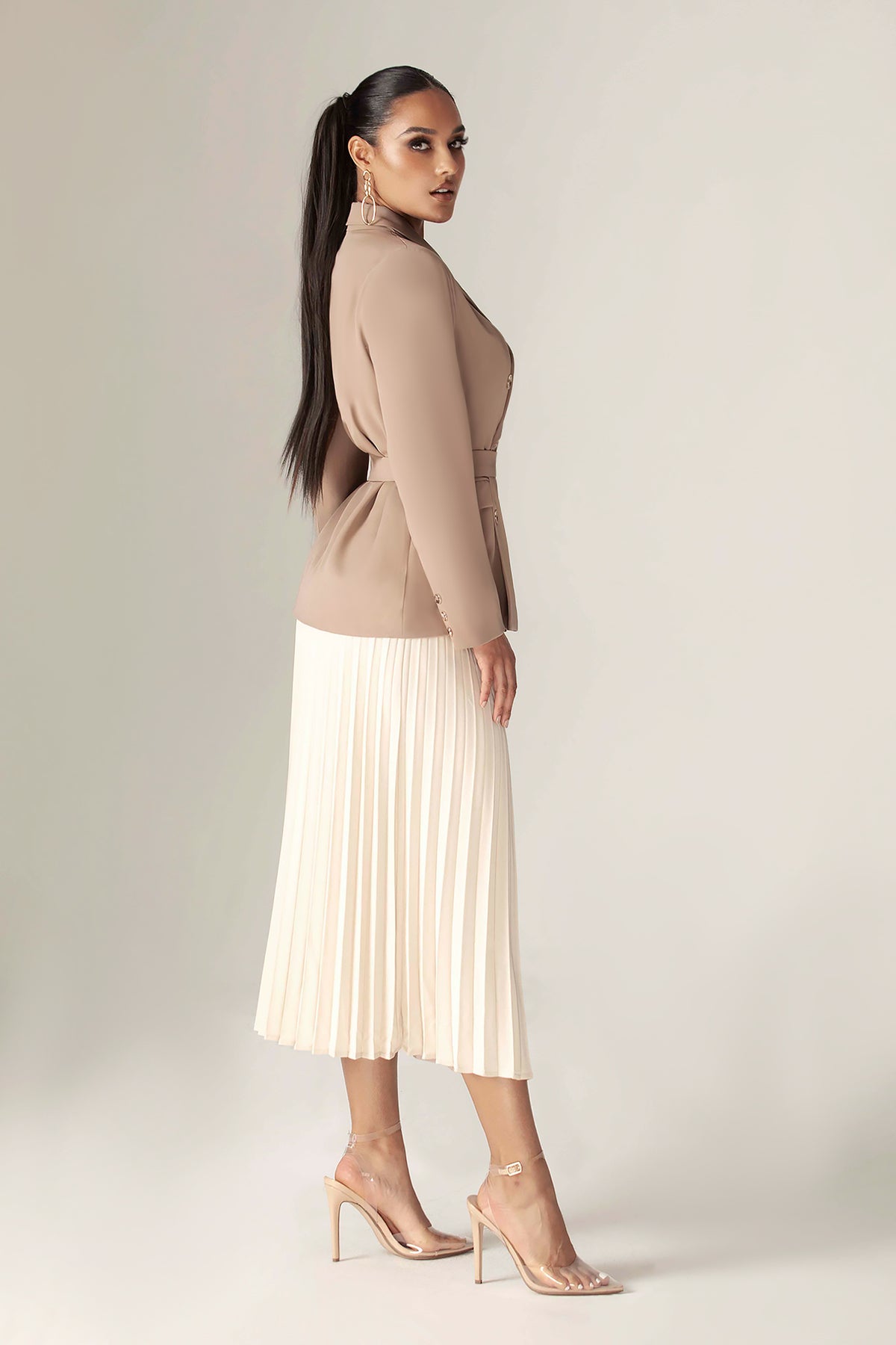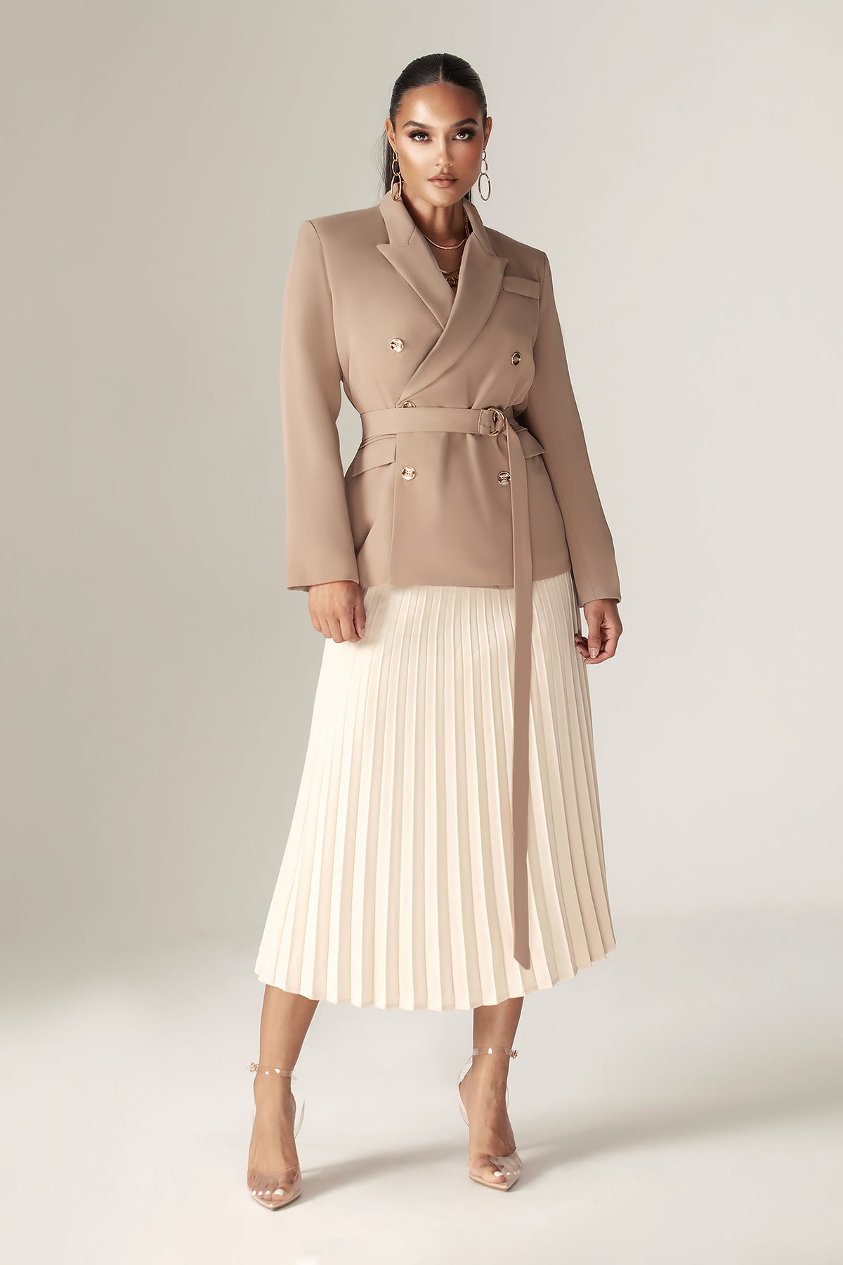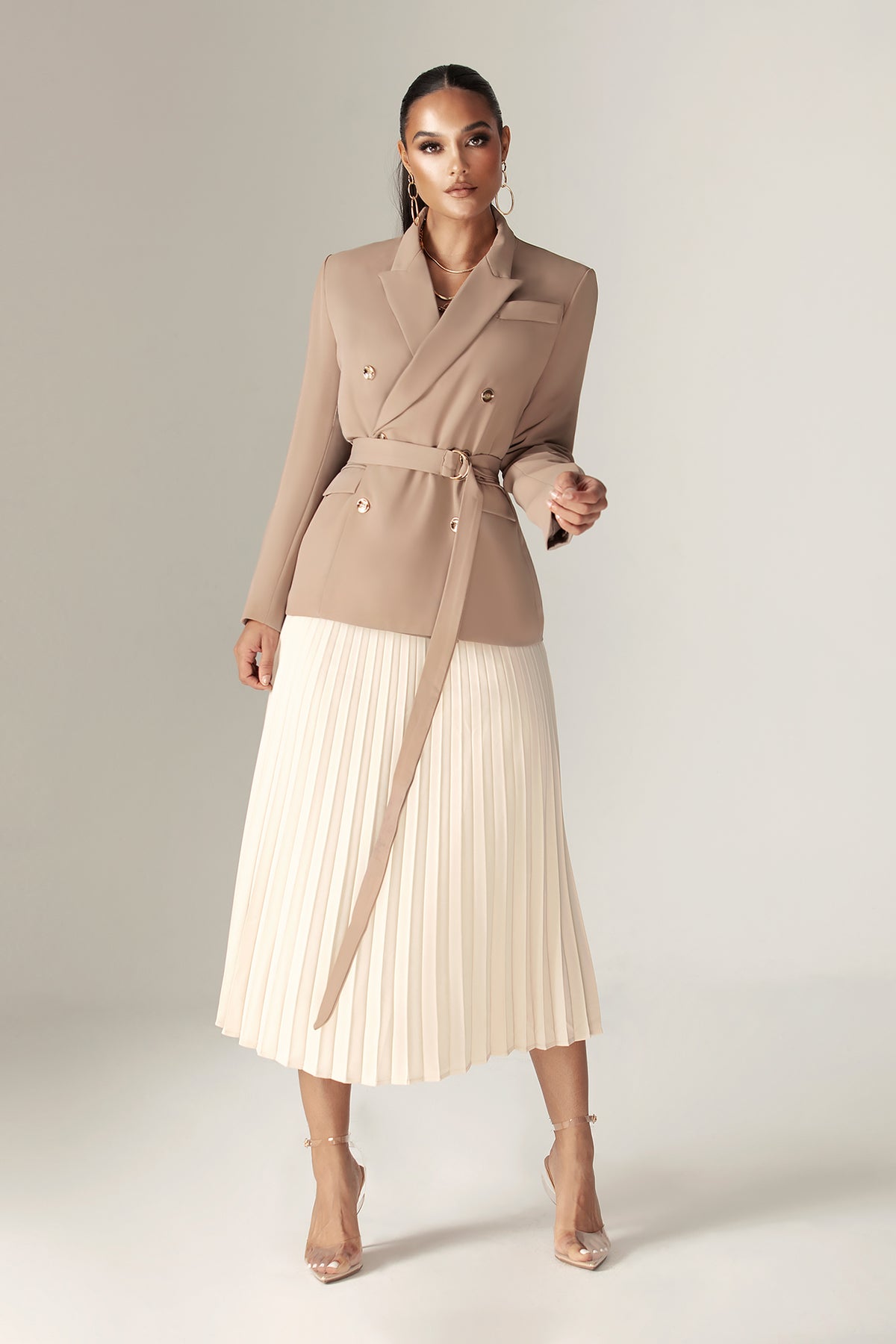 Gloriette Belted Double Breasted Crepe Blazer (Pastel Brown)