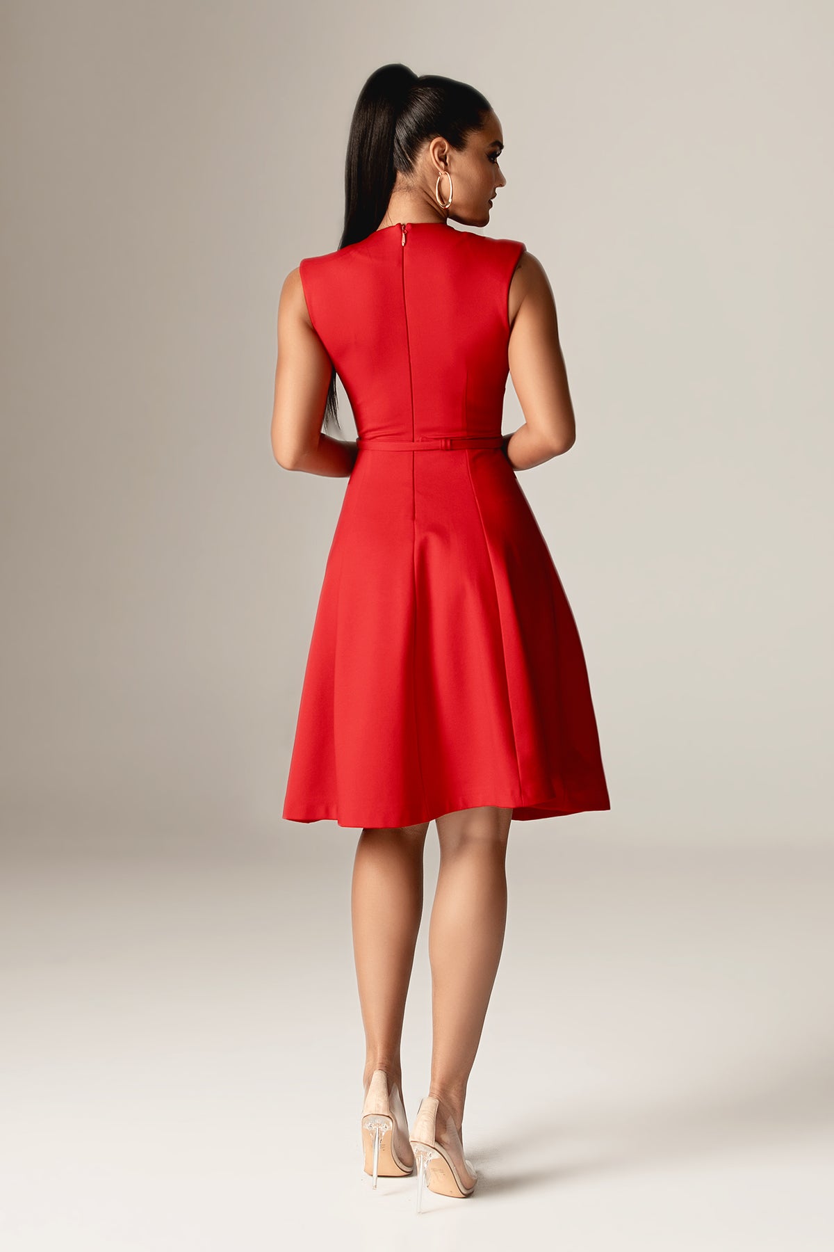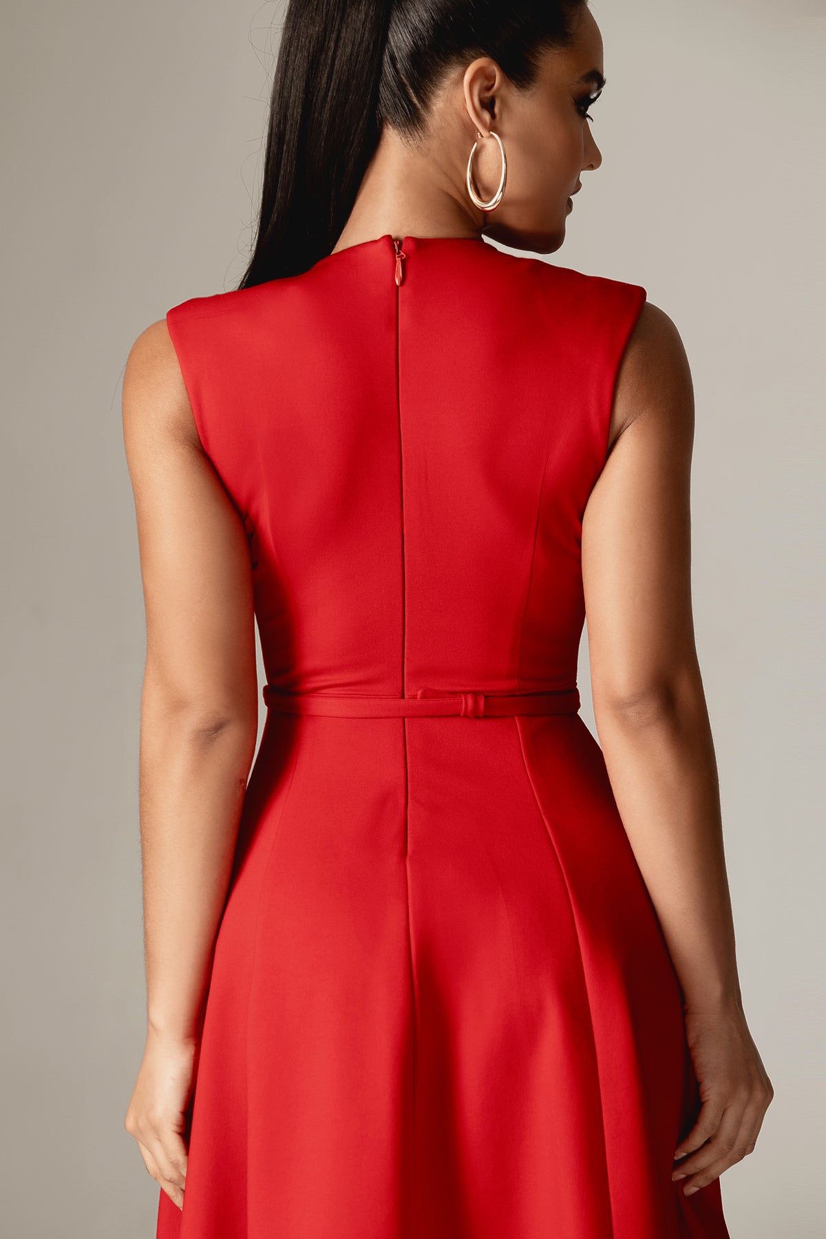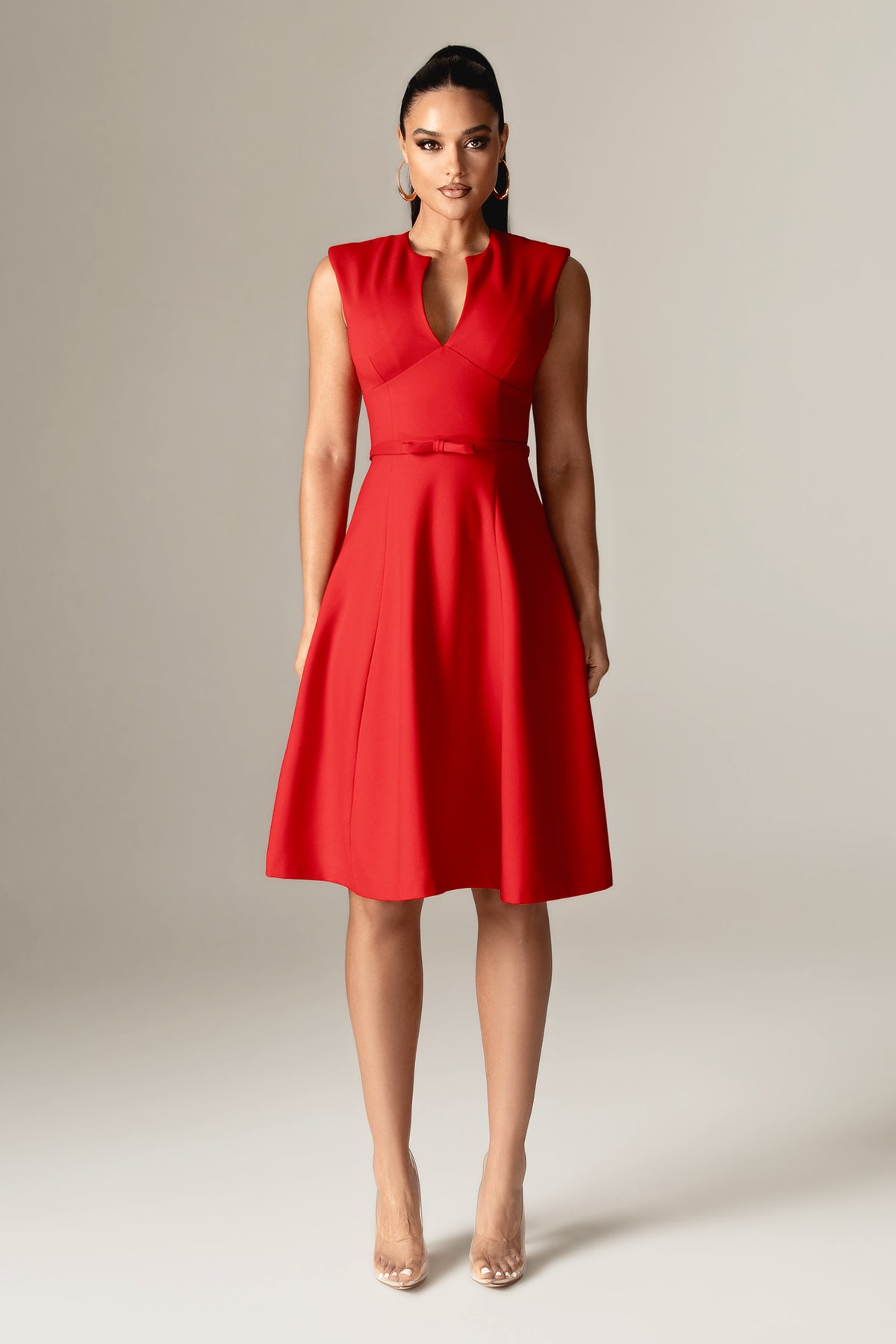 Leslie Italian Ponte Belted Midi Dress (Red)
