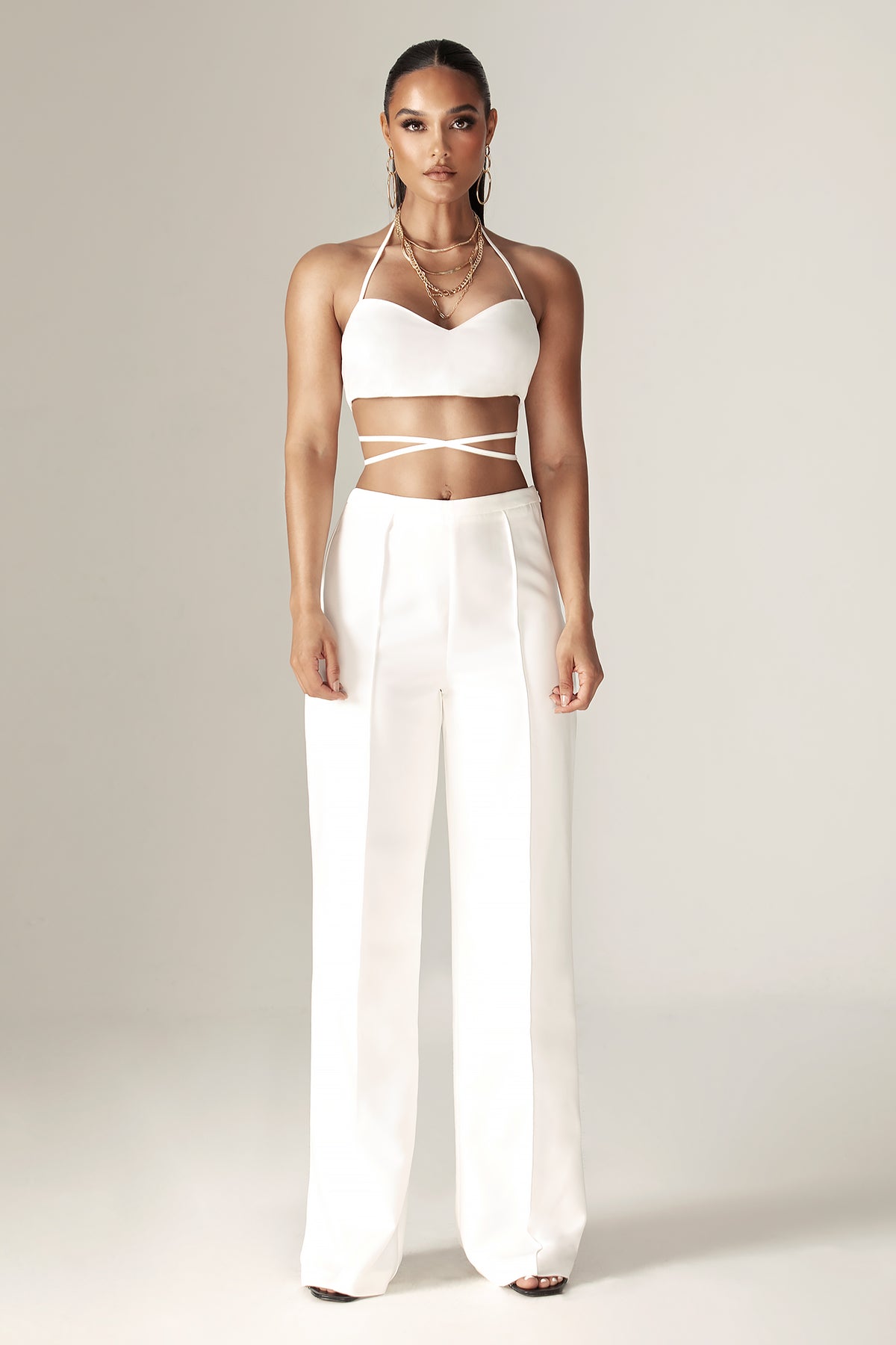 'Lexie' has a distinct feminine feel, designed with crisscross ties to wrap around the waist and tie at the back. It's made from a heavy weight crepe with sweetheart neckline. The additional slim, wraparound ties knot to the back keeping all eyes on the waist. It is fully lined for a smooth and comfy finish and is a pull on style for easy on wear. Wear yours with our Lena wide leg pans.
