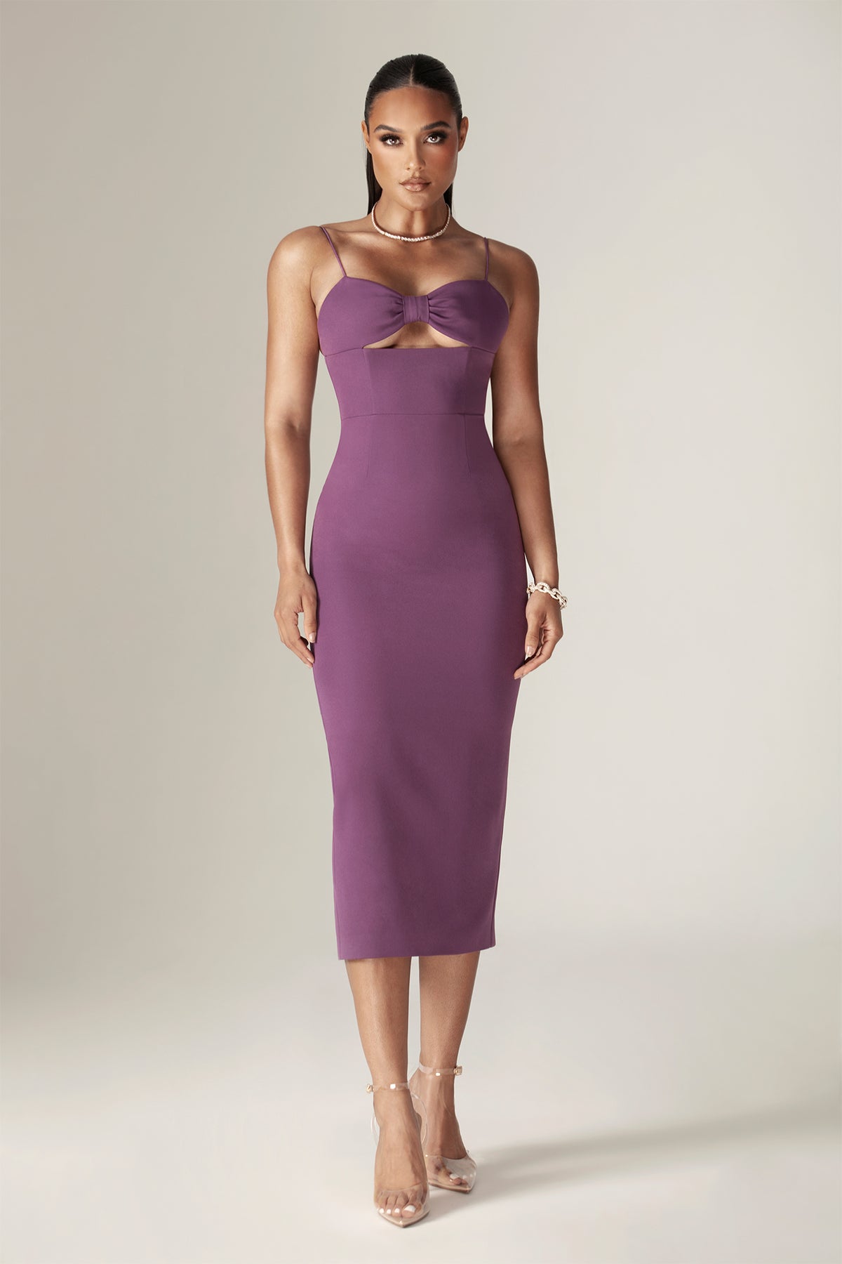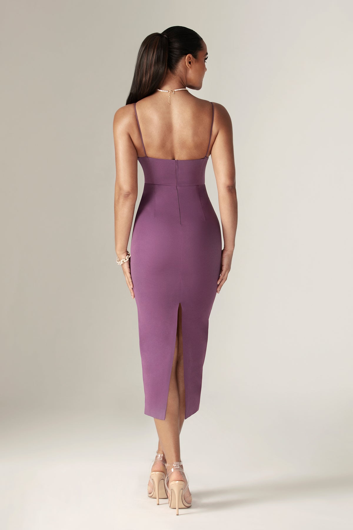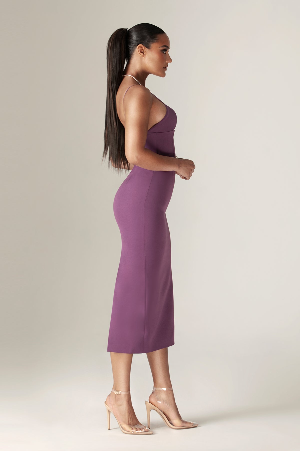 Loreen Crepe Straps Corset Midi Dress (Purple)