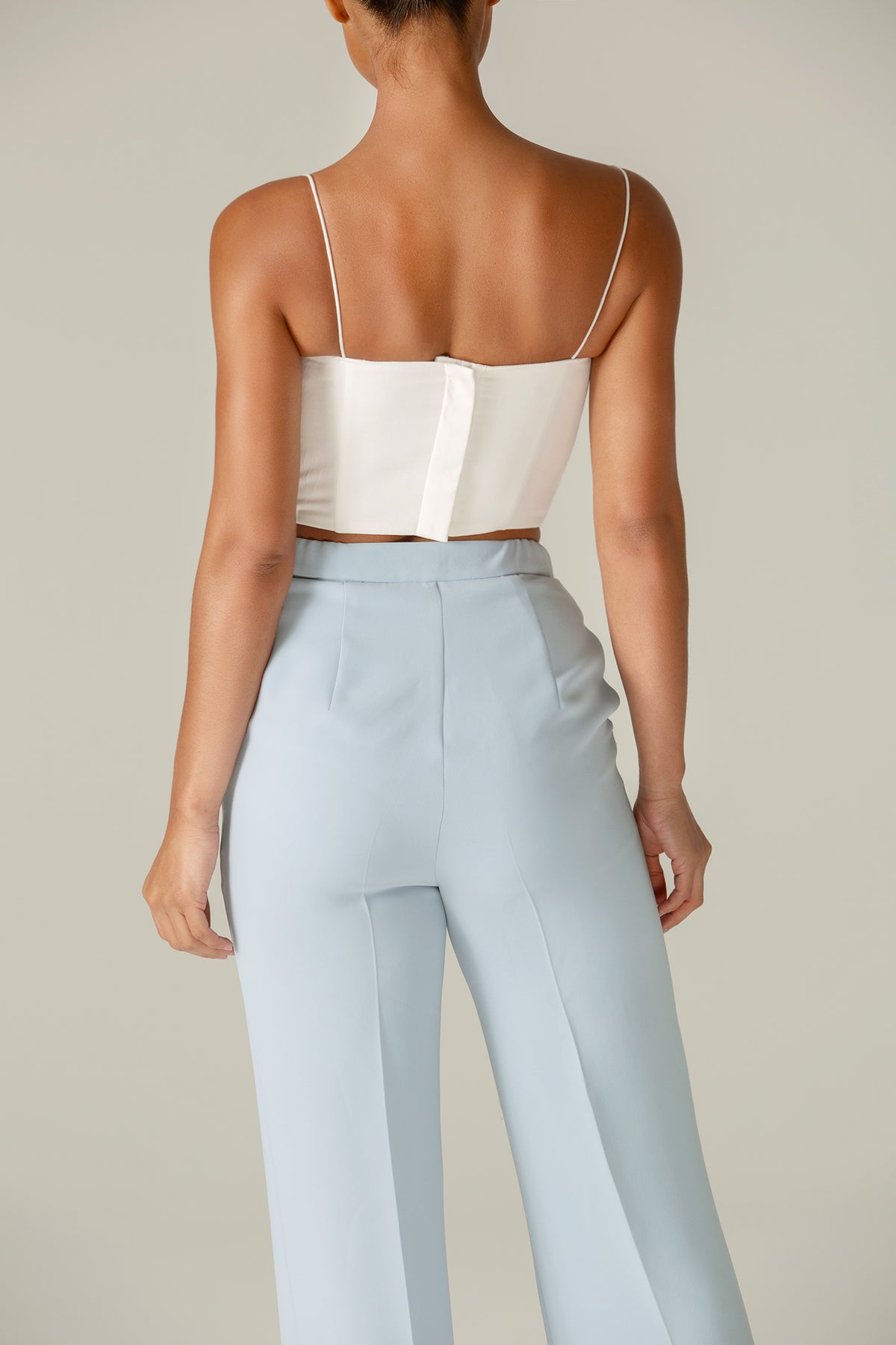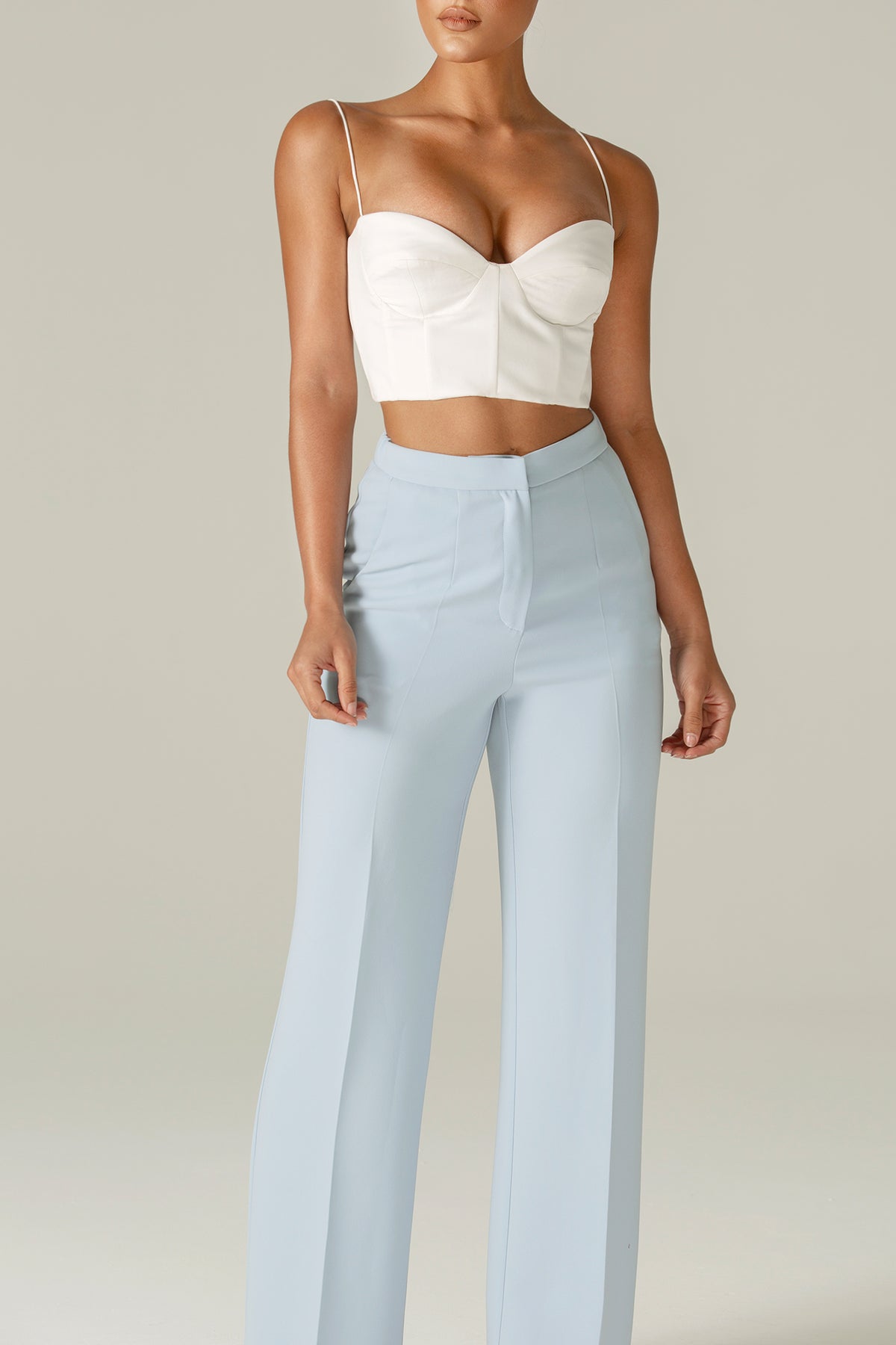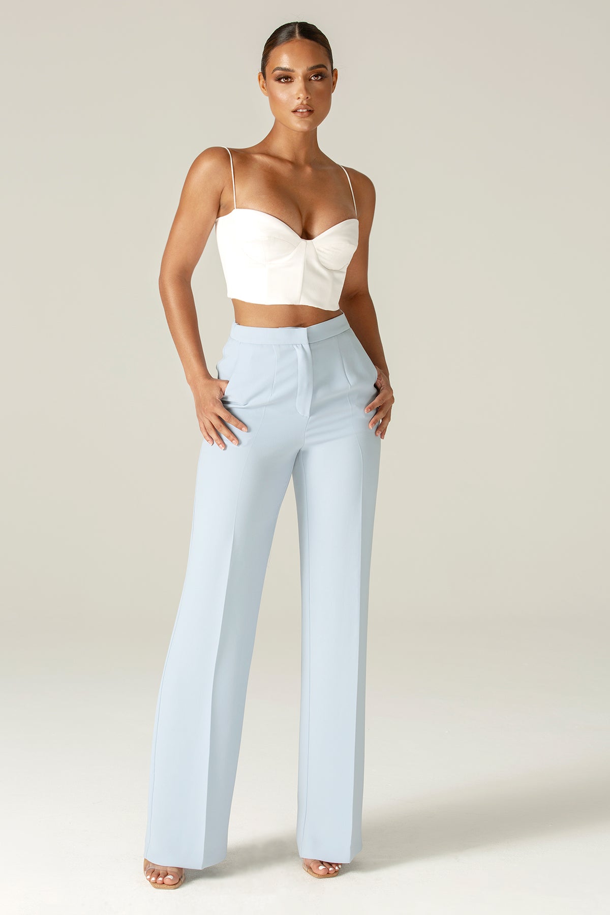 Niaz High Wide Leg Pants' are cut from our amazing tailoring Crepe fabric and have wide legs that sway beautifully as you walk. They sit high on the natural waist with a super comfy fit around the hips that makes your peach pop. They have a zip with hook and bar fastening to the front. They sport a two pocket styling and are fully lined in a lightweight satin for a smooth finish. Getting dressed is effortless with the matching 'Carla Structure Crop Top' for a super stylish put together look as our designers intended.