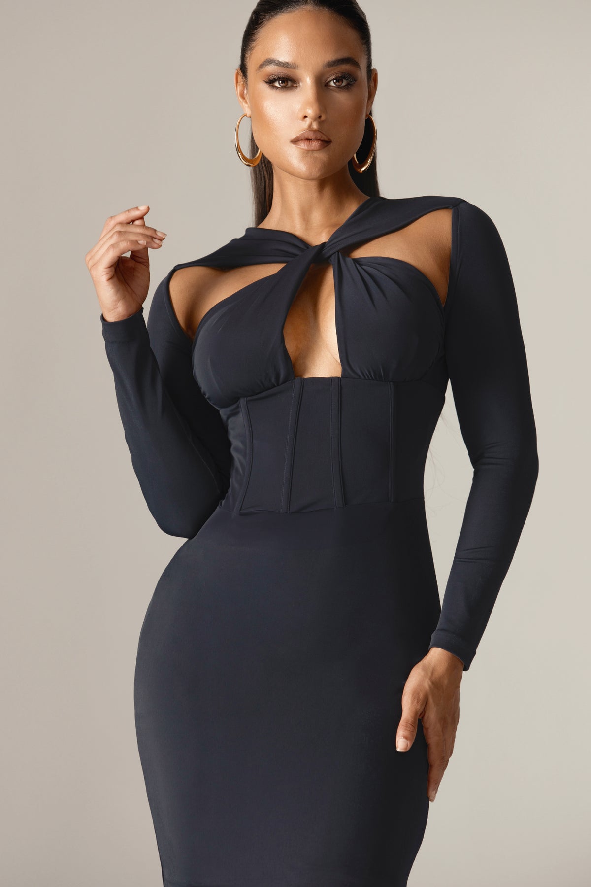 Renata Criss Cross Neckline Mini Dress (Navy Blue)