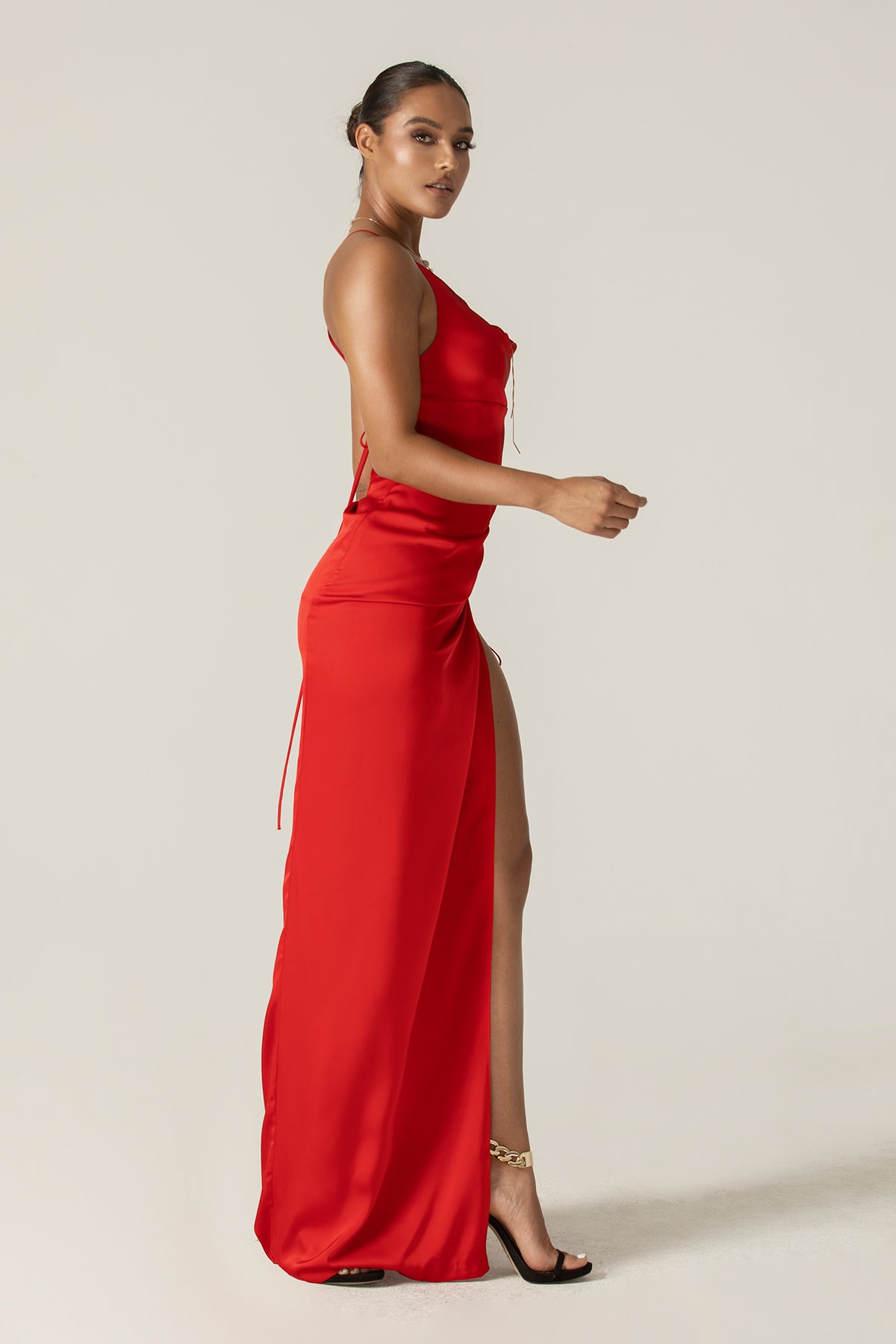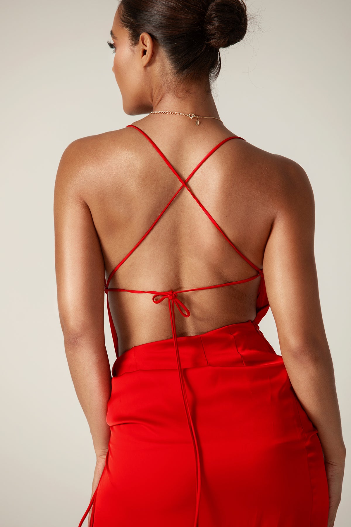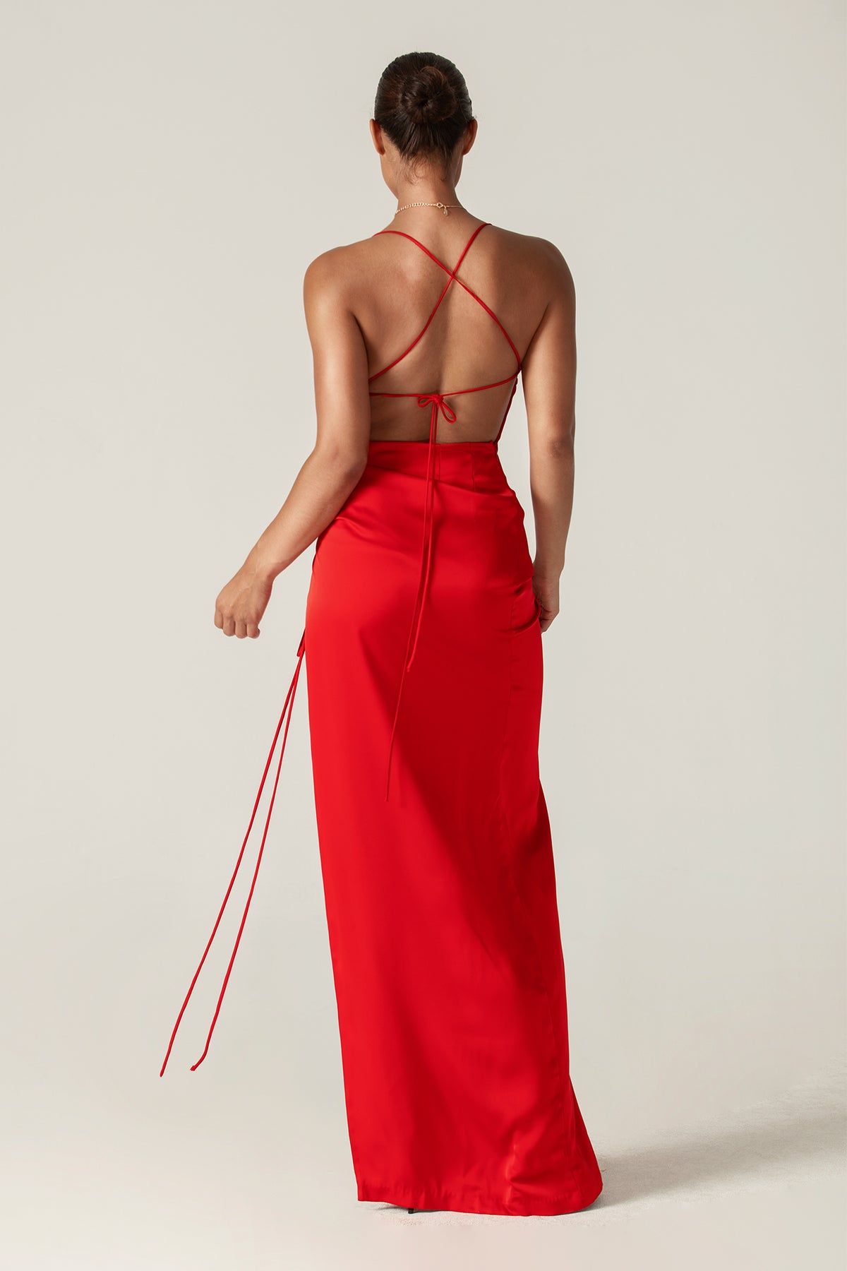 Reva Cowl Neckline Sheath Backless Maxi Dress (Red)