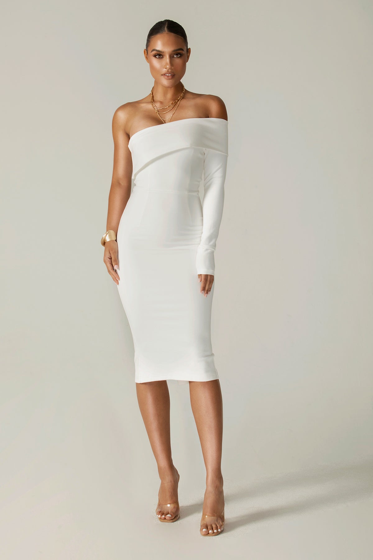 Rita One Shoulder Dress (Off White)
