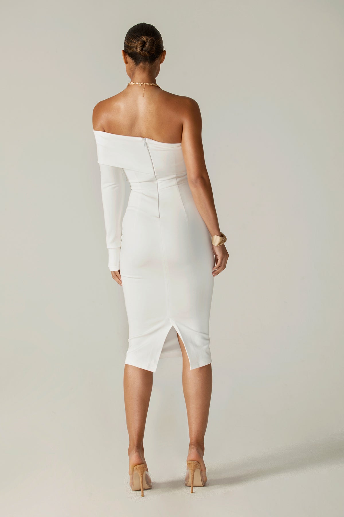 Our designs are always heavily influenced by our understanding of the female form and 'Rita' is no exception. It's cut from our heavyweight stretchy and soft ponte de Roma fabric and This one-and-done midi frock is designed with a one-shoulder neckline that elegantly wraps around the shoulder. The knee length pencil cut finishes this delicate and stylish piece. Command the room in the party dress for holidays and beyond.style yours with Tonia belt for more glamorous.
