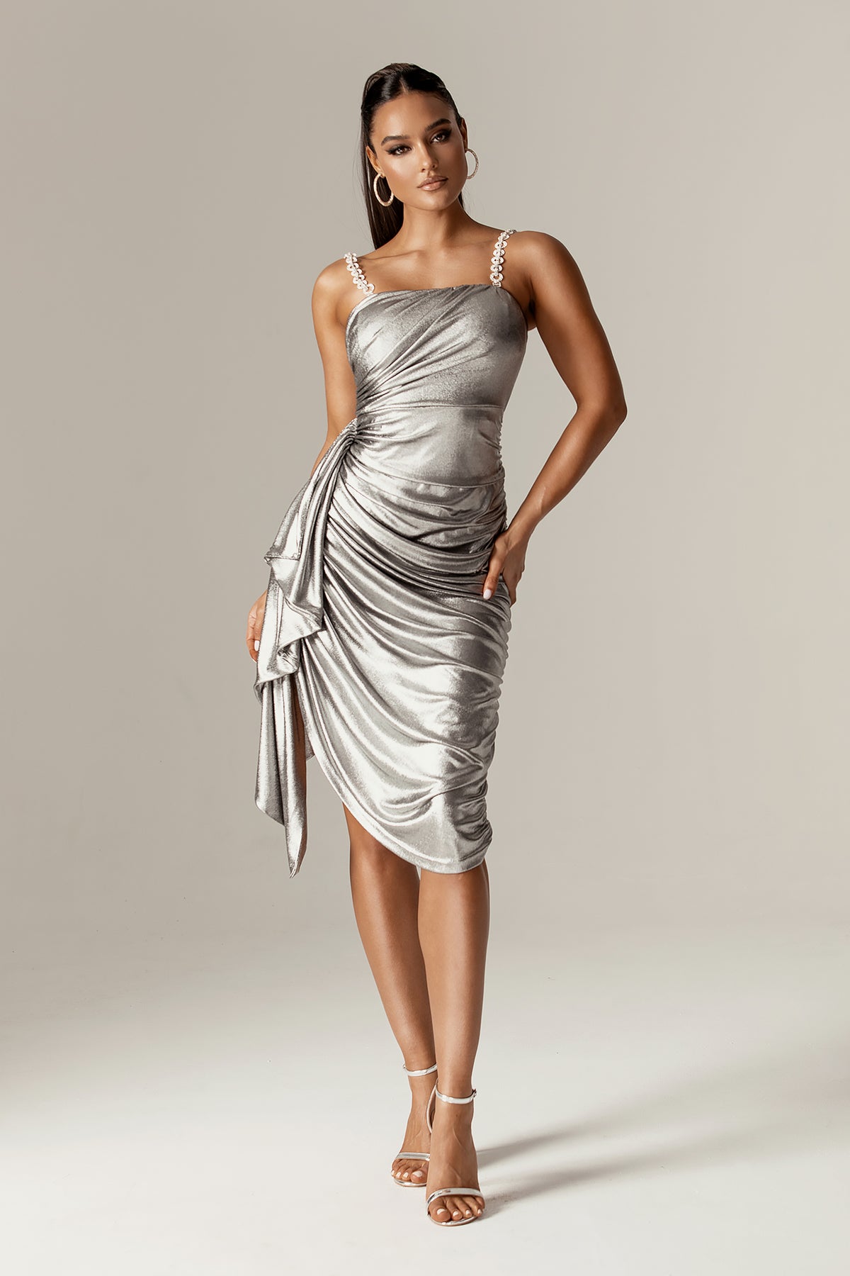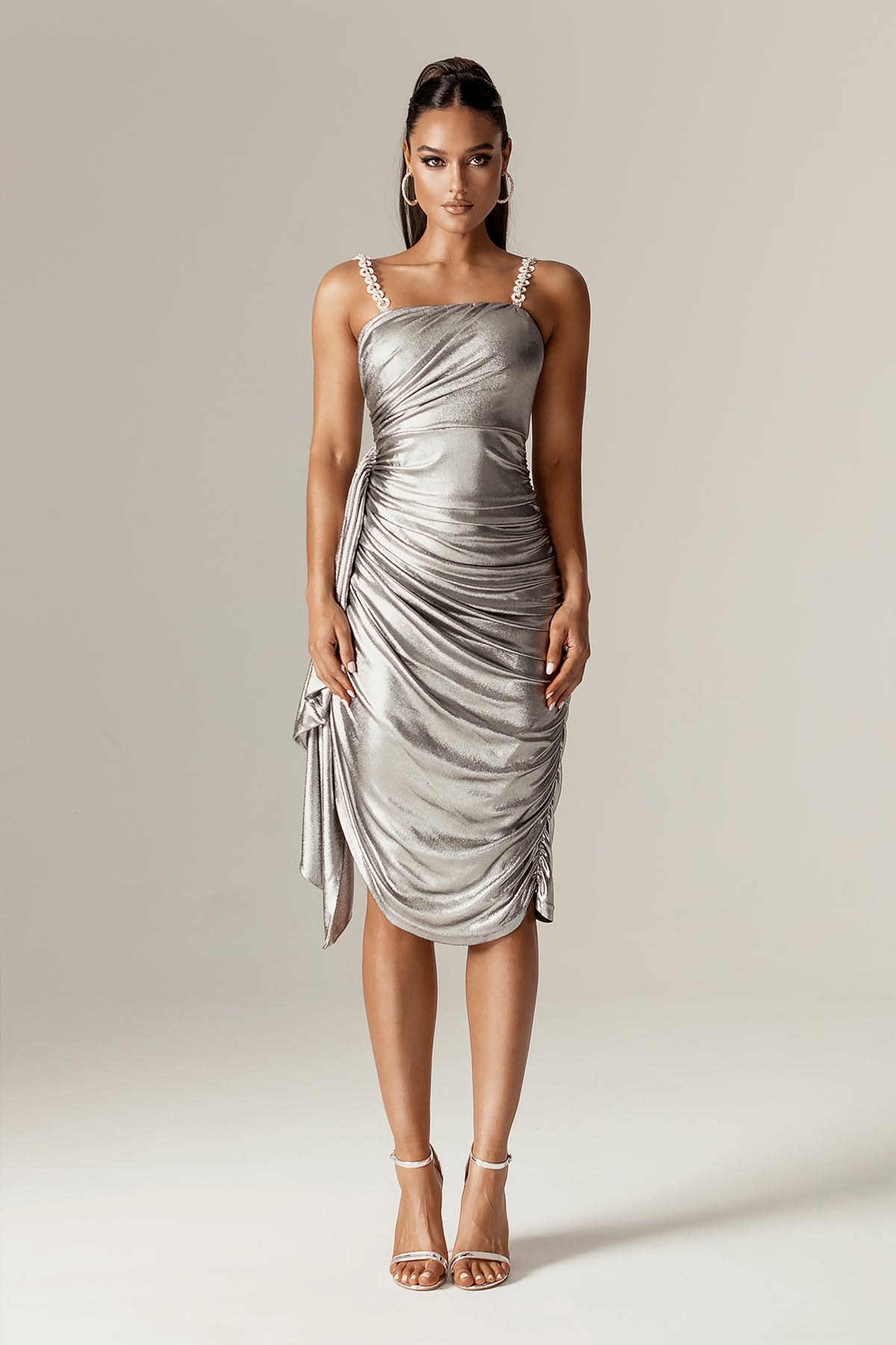 Sandra Metallic Ruched Straps Midi Dress (Metallic Shimmer)
