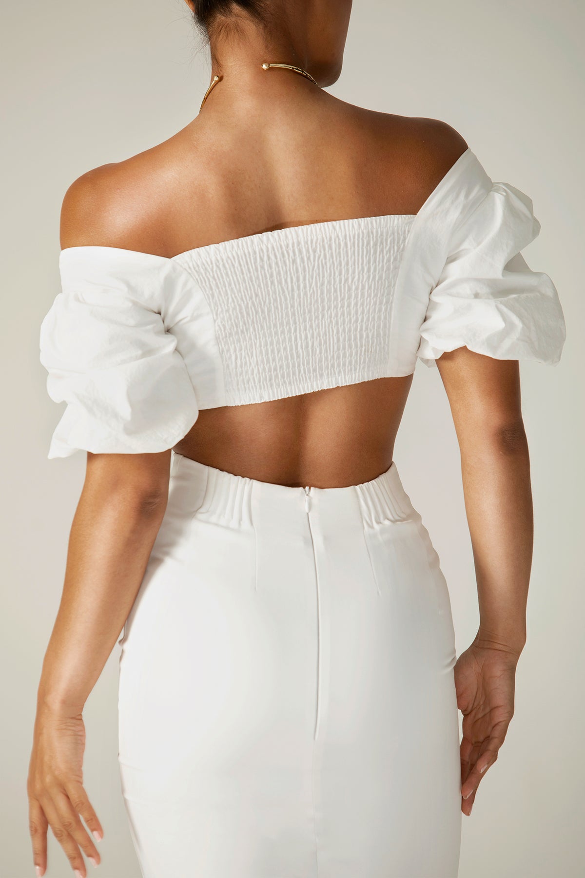 Cut from our ultra luxurious crepe fabric , this curve creating style hugs the hips and sits high on the natural waistline. The center back split shows just the right amount of flesh and the waistband has elastic so that the waist can be further cinched and adjustable . It's fully lined for a smooth line free finish and we think it looks great with the Susan Puff Sleeves Crop Top or Carla Structure Crop Top.
